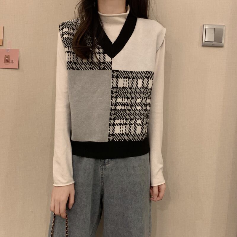 スプリングルーズスタイルVネックカラーノースリーブニットレディース 春物 ステッチ misskkl28866242242