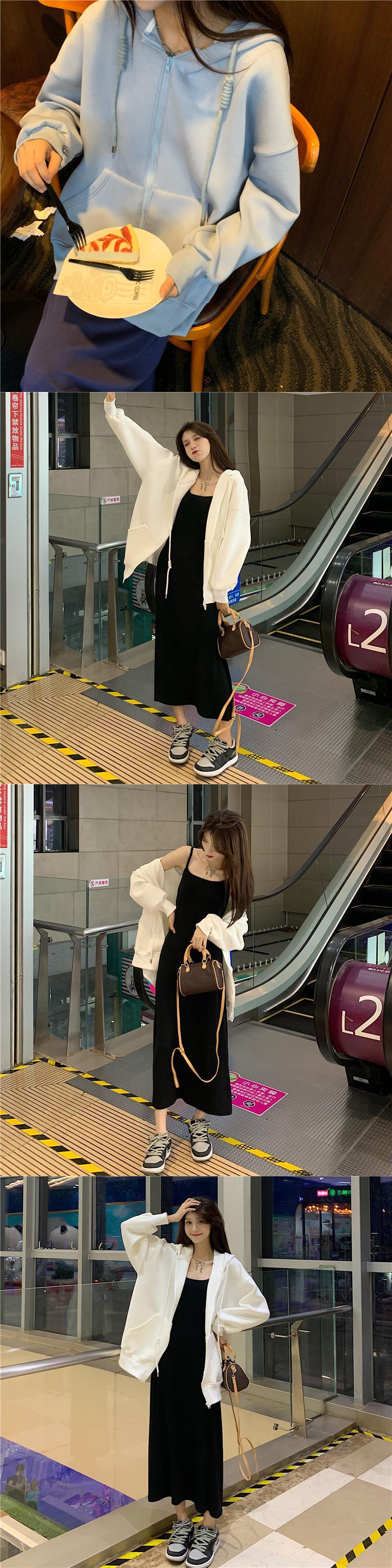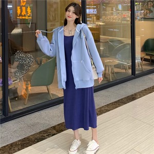 色:スカイブルーのセーター,白いセーター,青い服,ブラックサスペンダースカート