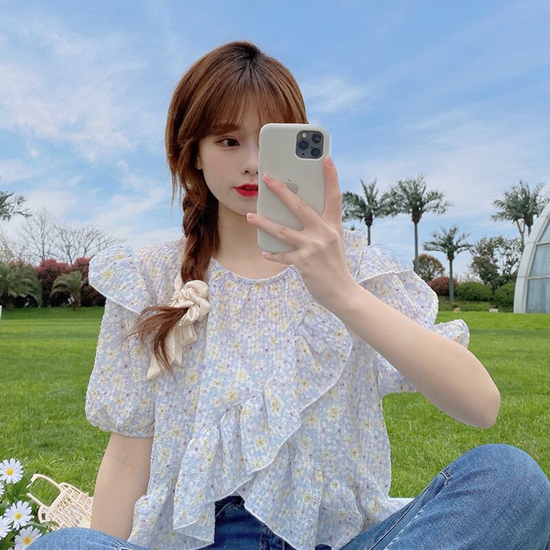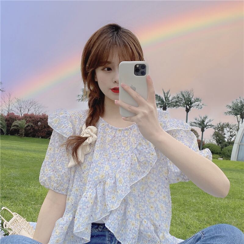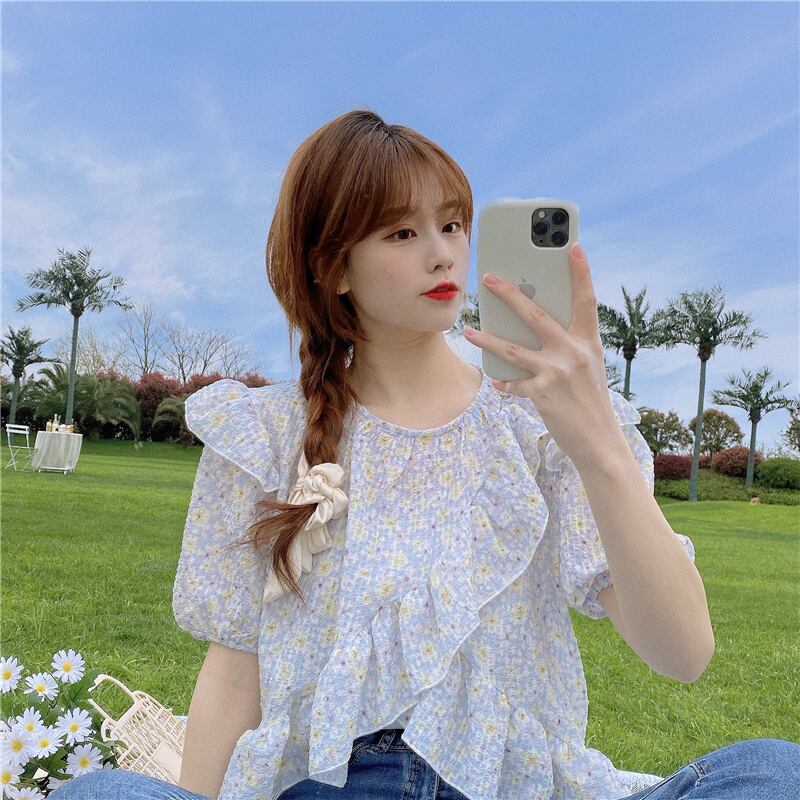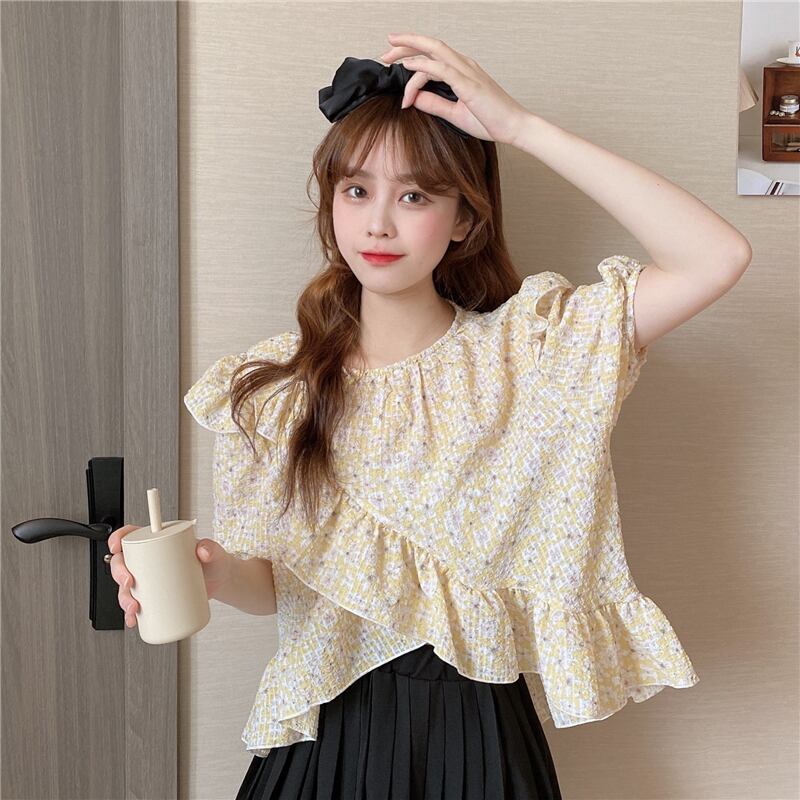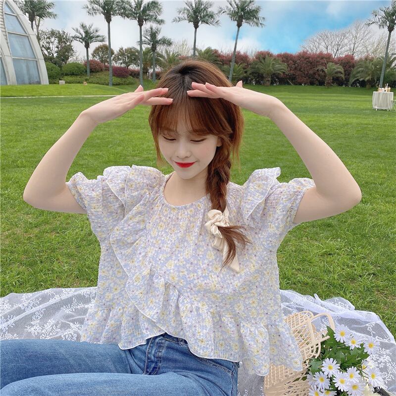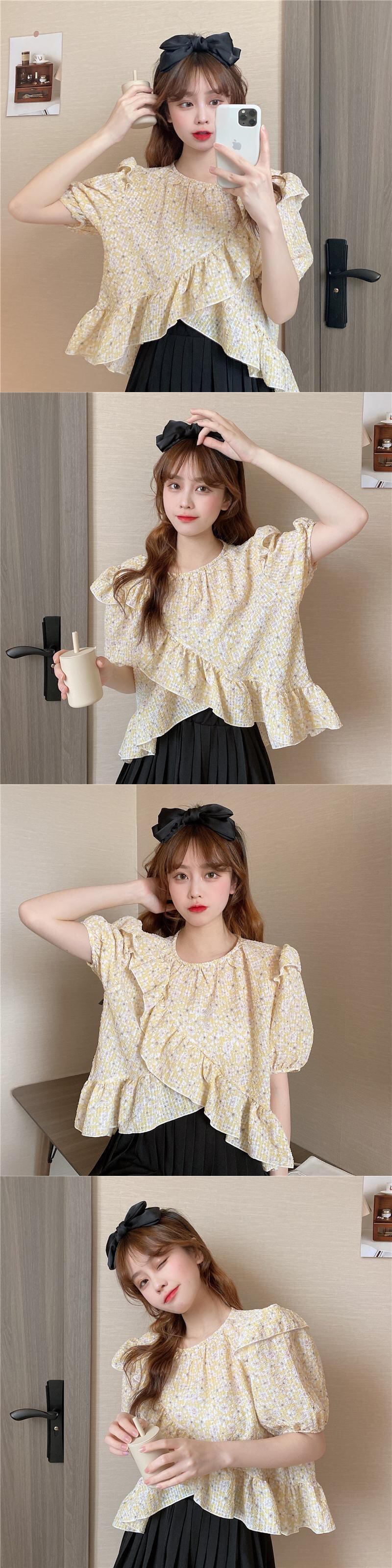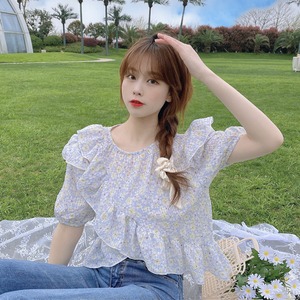 サマーラウンドネックフローラルシフォントップス 夏物 花柄 Oネック misskkl40959961719