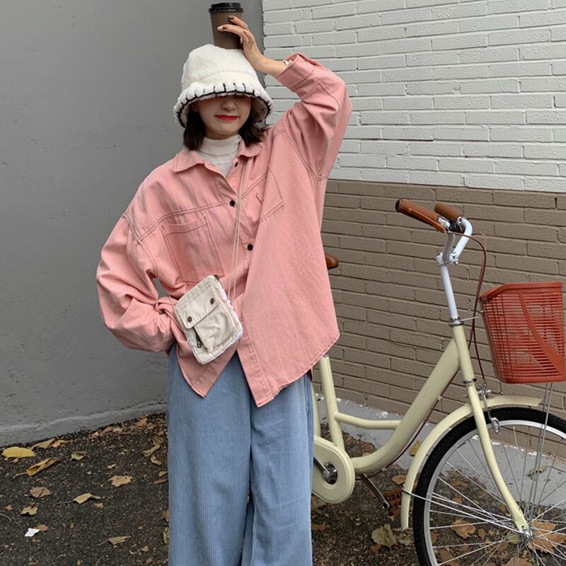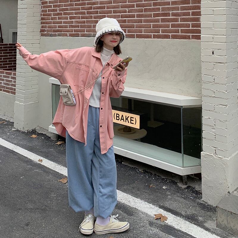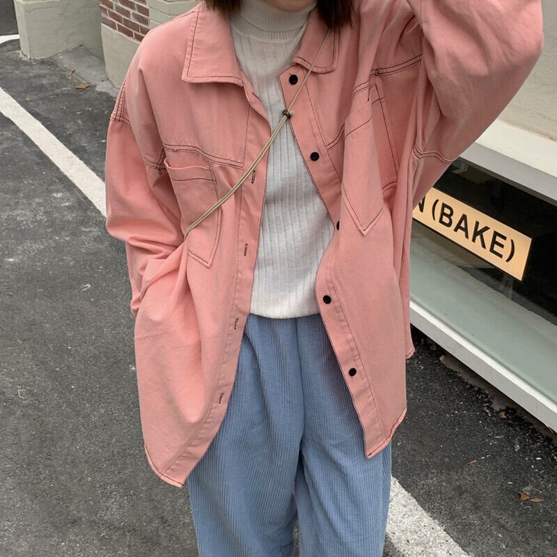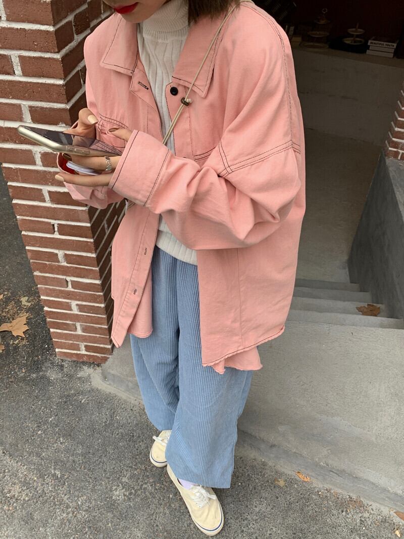 スプリングルーズシャツ ジャケット レディース ロング ピンク 春物 misskkl45887875971