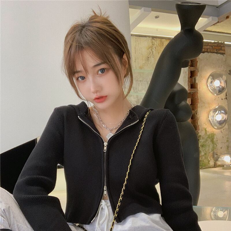 スプリングオータムスリムジッパーショートフードセーター カーディガンシャツ レディース ロング 春物 秋物 misskkl31662193812