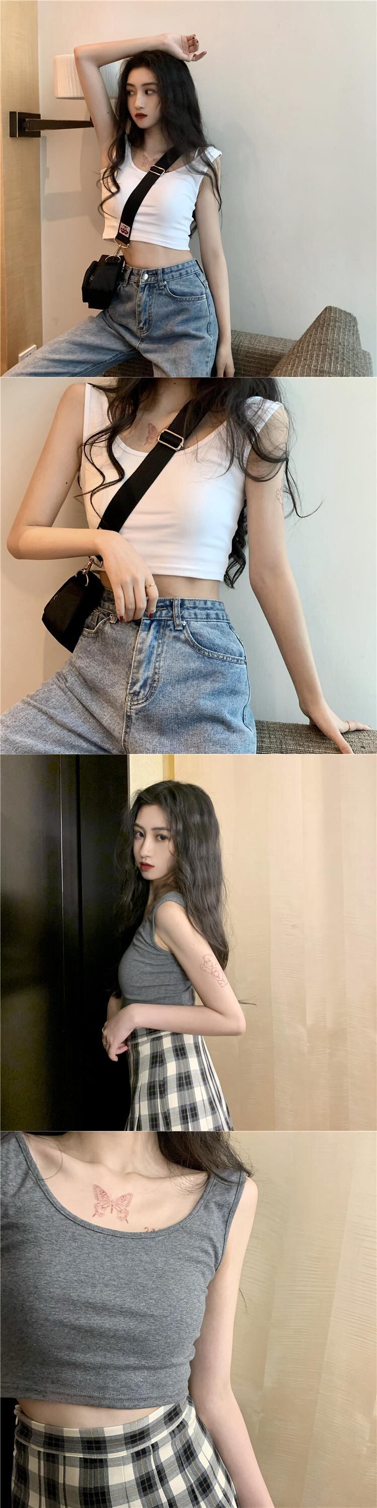 スプリングカジュアルスリムショートソリッド カラーベーシックトップス レディース 春物 ソリッドカラー misskkl67249686253