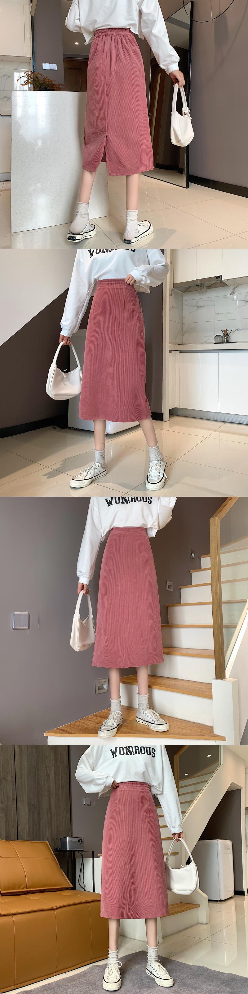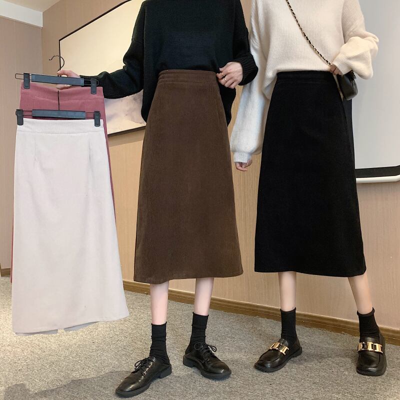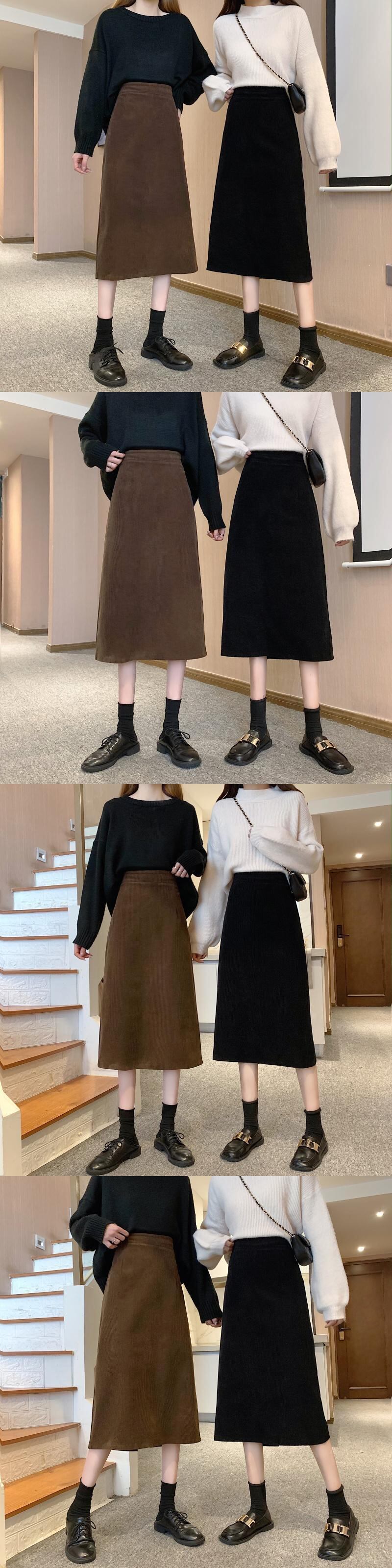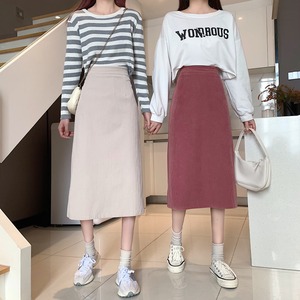 スプリングオータムハイウェストウェストコーデュロイスカート 春物 秋物 misskkl99076096404