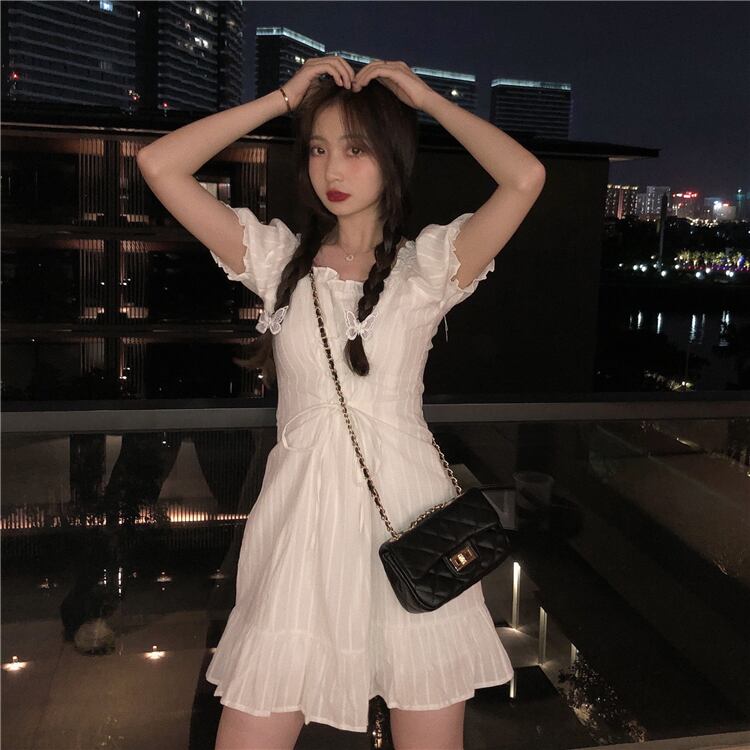 スプリングスタイルウェストスリムレース半袖スリーブドレス スカート ショート ハーフスリーブ 春物 スクウェア misskkl72839020507