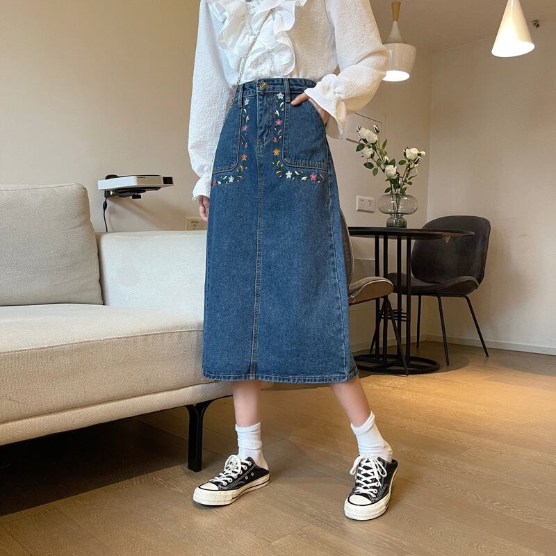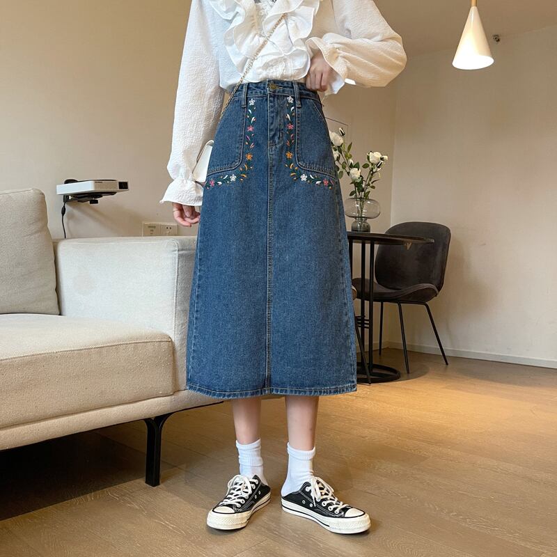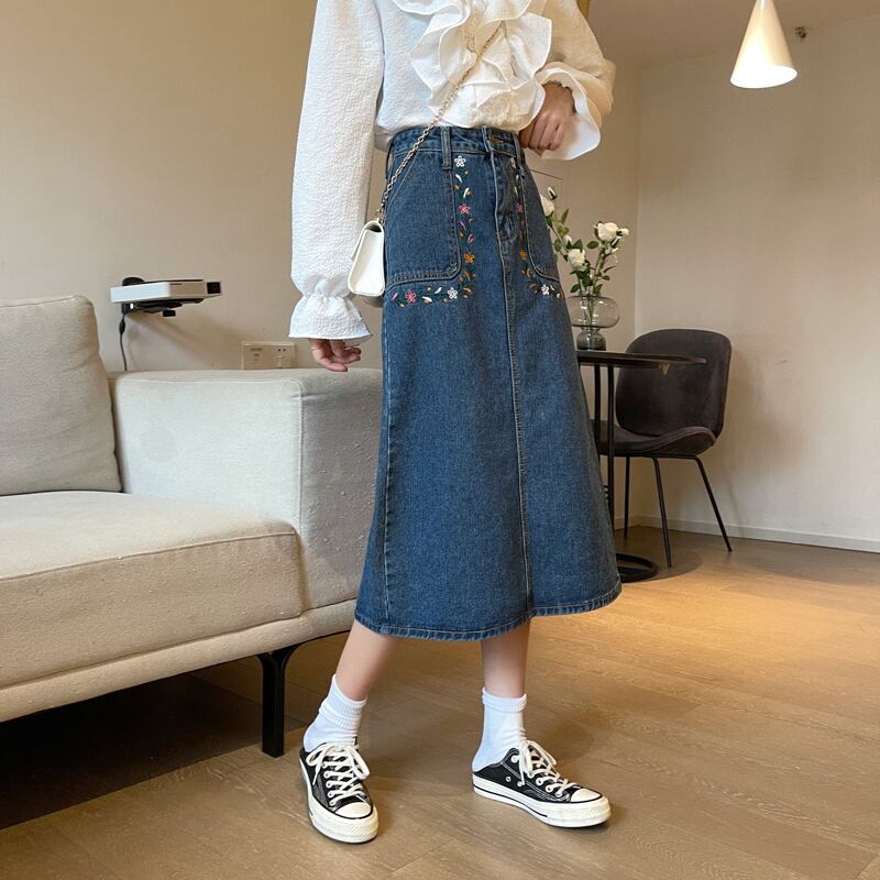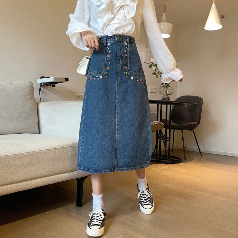 スプリングスタイルハイウェストウェストスリム刺繍Aラインスカート 春物 misskkl242278651