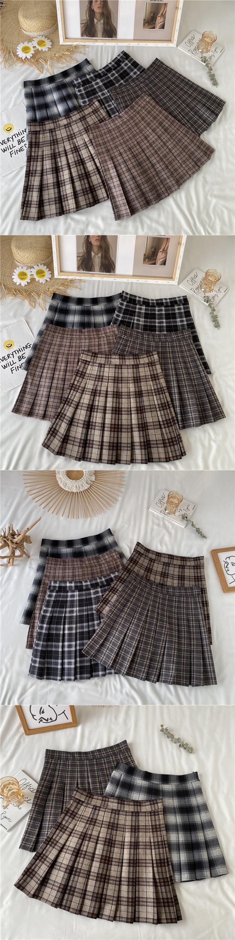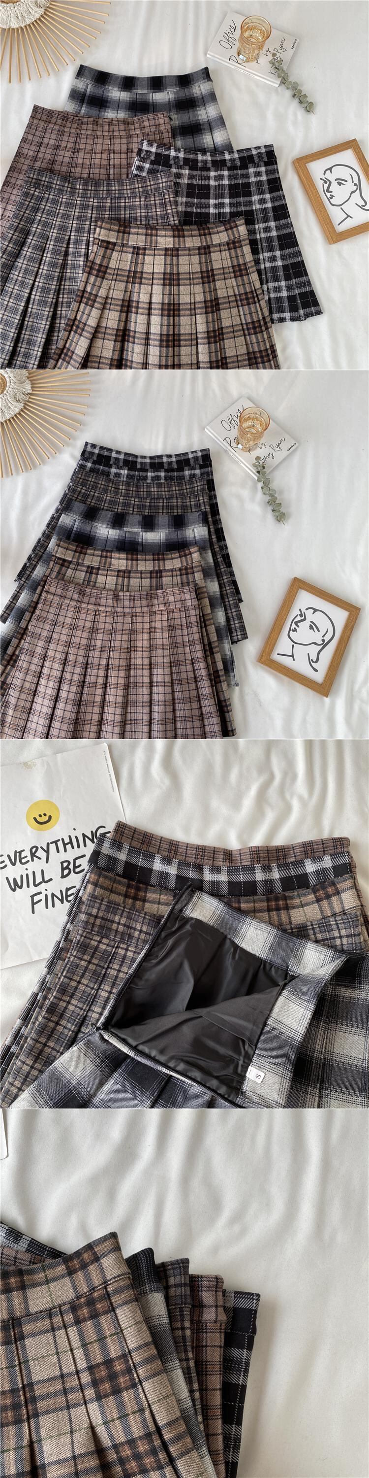 スプリングオータムハイウェスト薄手スカート 格子柄プリーツショート 春物 秋物 misskkl47434804690