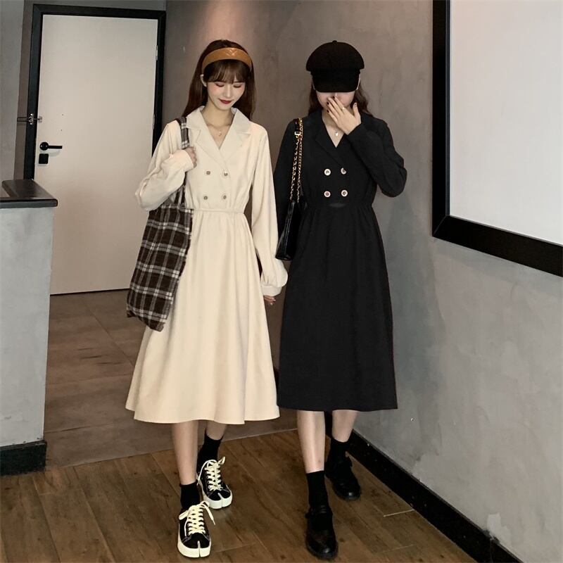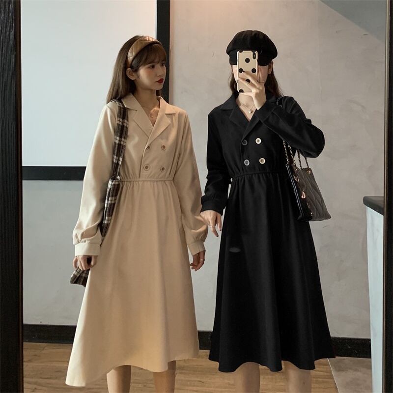 スプリングオータムスタンダードウェストカラードレス スカート ロング レトロ 春物 秋物 misskkl9682110890
