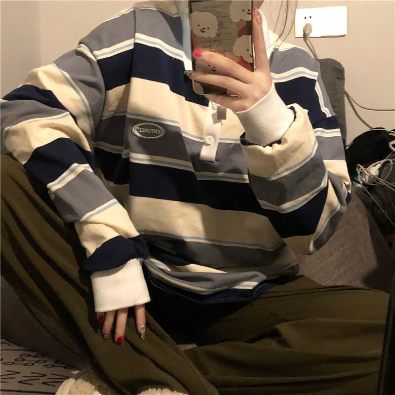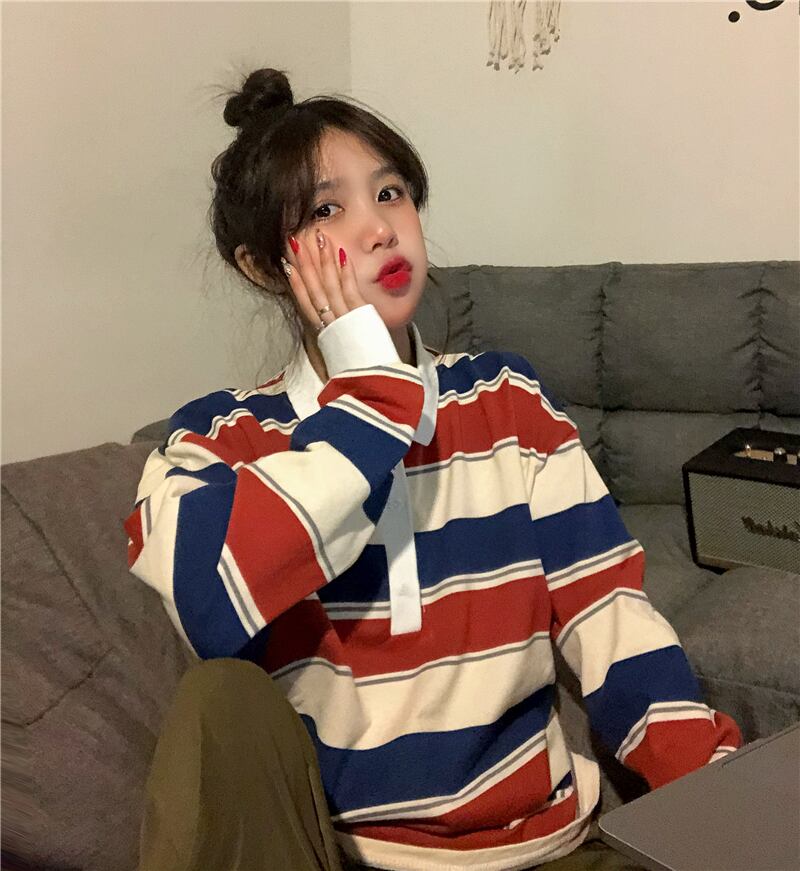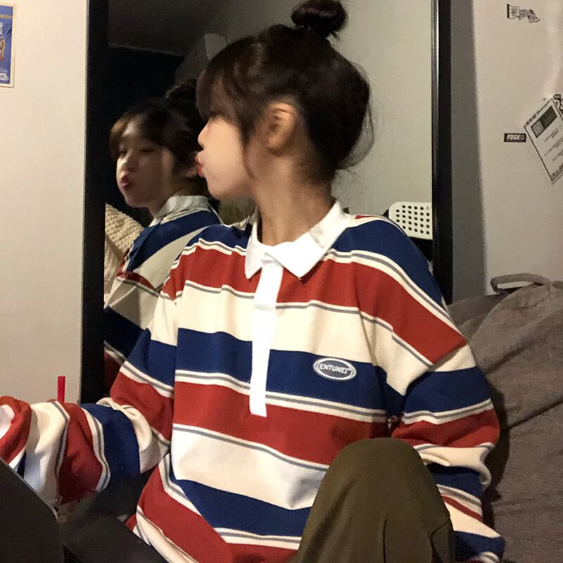 スプリングオータムルーズカラーストライプセーター レディース ロング 春物 秋物 misskkl466635859