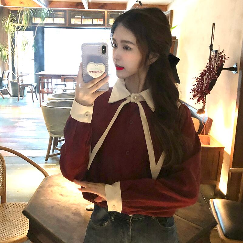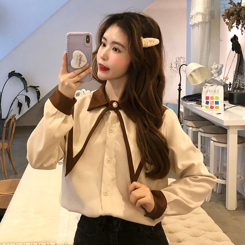 シャツ シフォンスプリングオータムカラートップス ロング 春物 秋物 misskkl64276406090