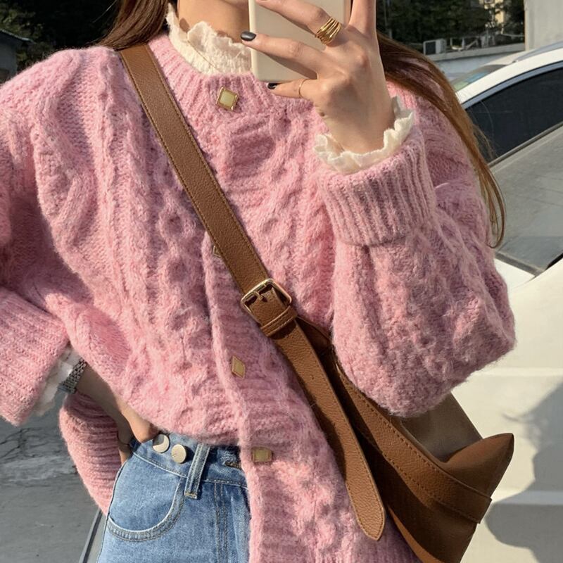 スプリングルーズラウンドネックセーター カーディガンシャツ レディース ロング 春物 Oネック misskkl7010557393