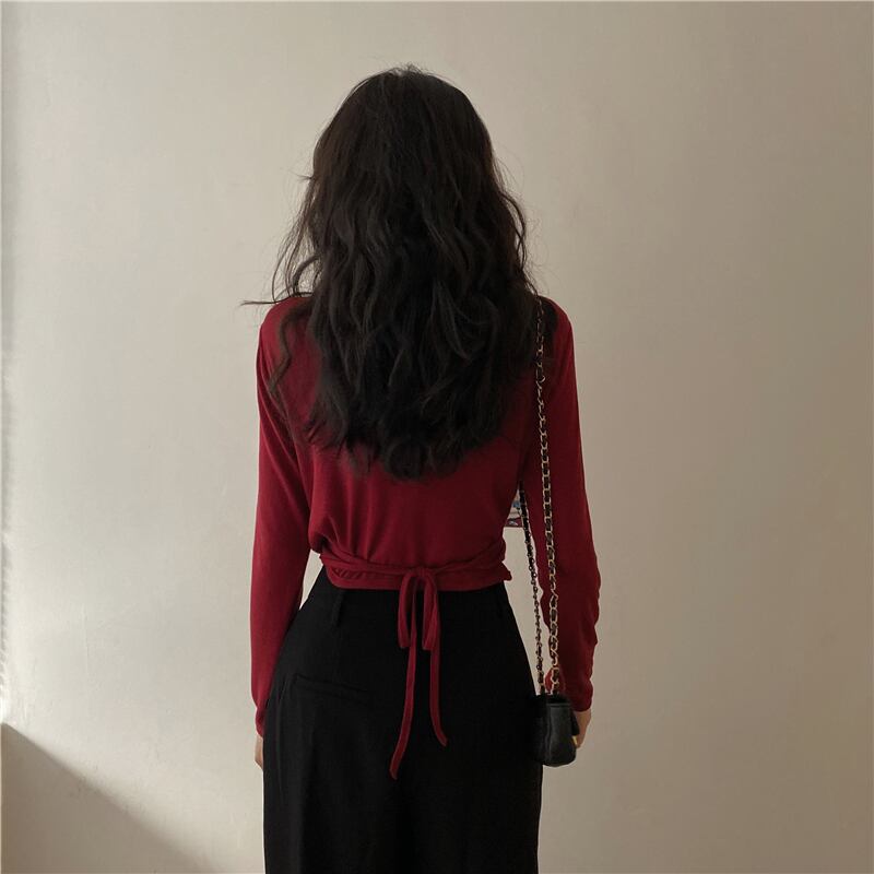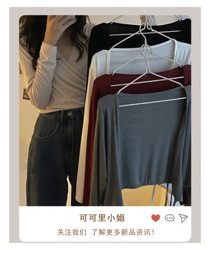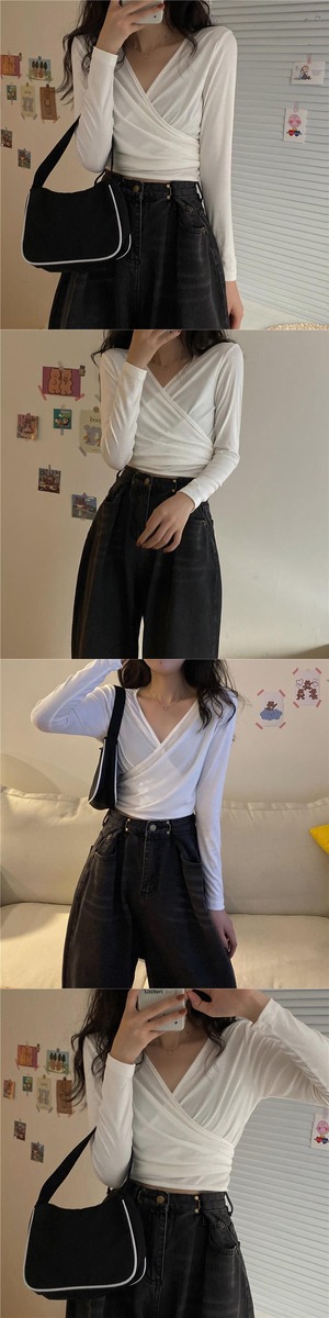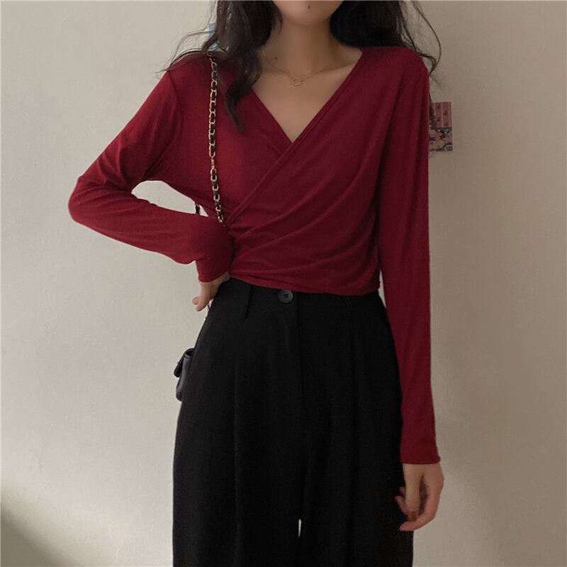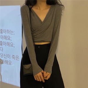 スプリングオータムVネックショートスリムTシャツ トップス ロング 春物 秋物 misskkl90919069214