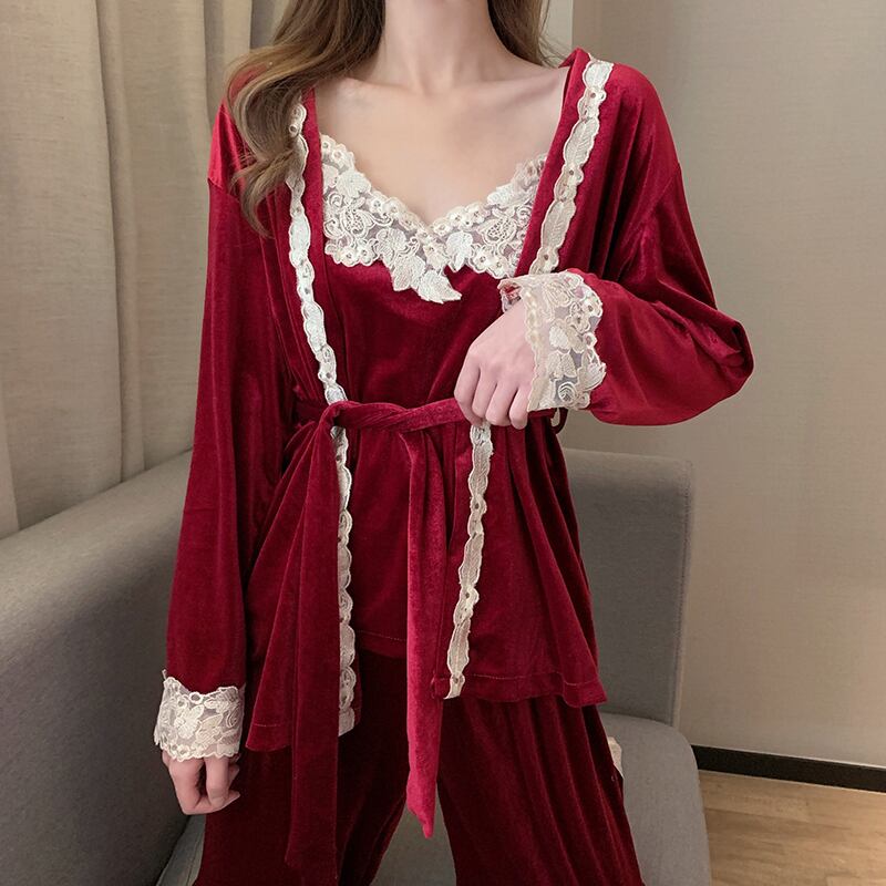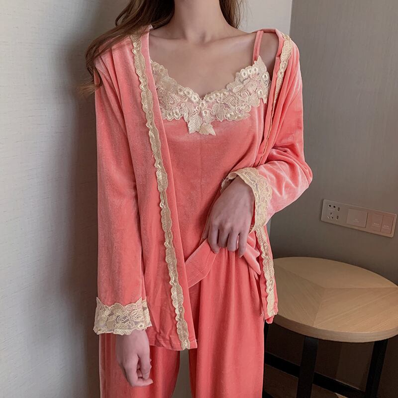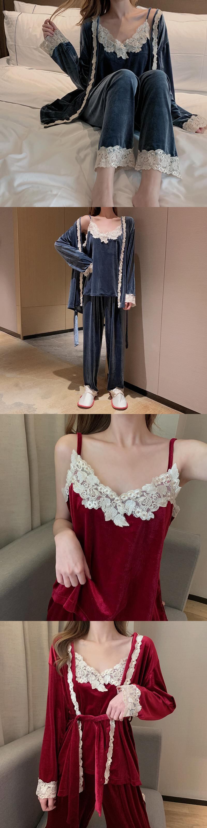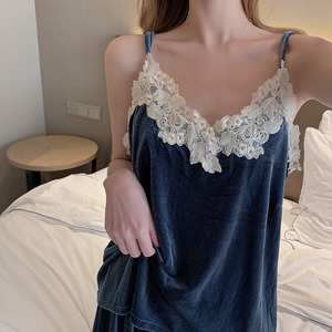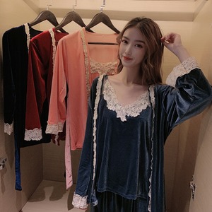 スプリングオータムルーズレースゴールドベルベットカジュアル ロング 春物 秋物 misskkl12983325319