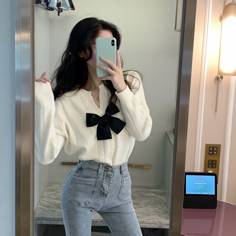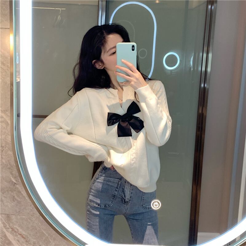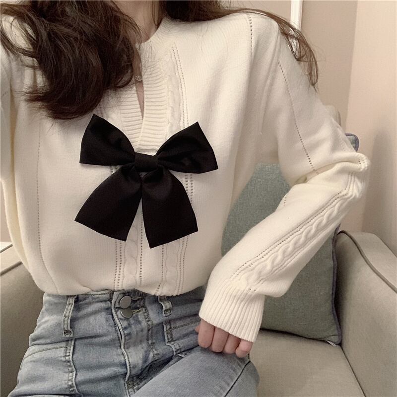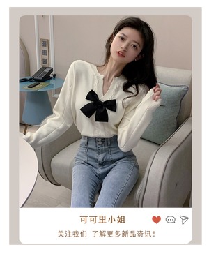スプリングオータムリボンVネックルーズセーター ロング 春物 秋物 misskkl70278997690