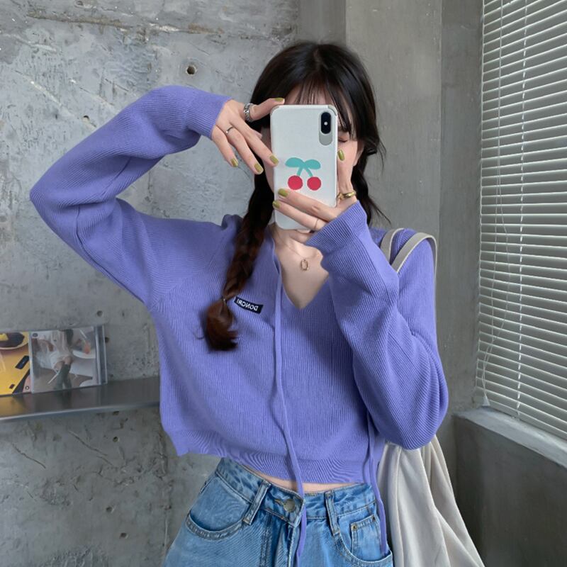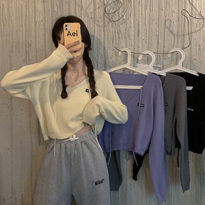 スプリングルーズショートVネックプルオーバー セーター トップス ロング 春物 misskkl1257635620