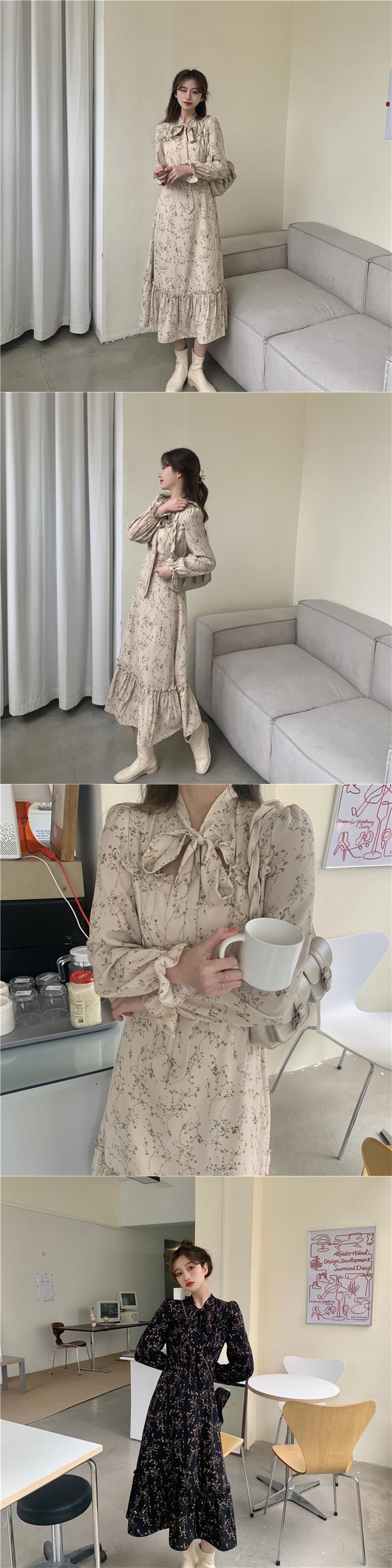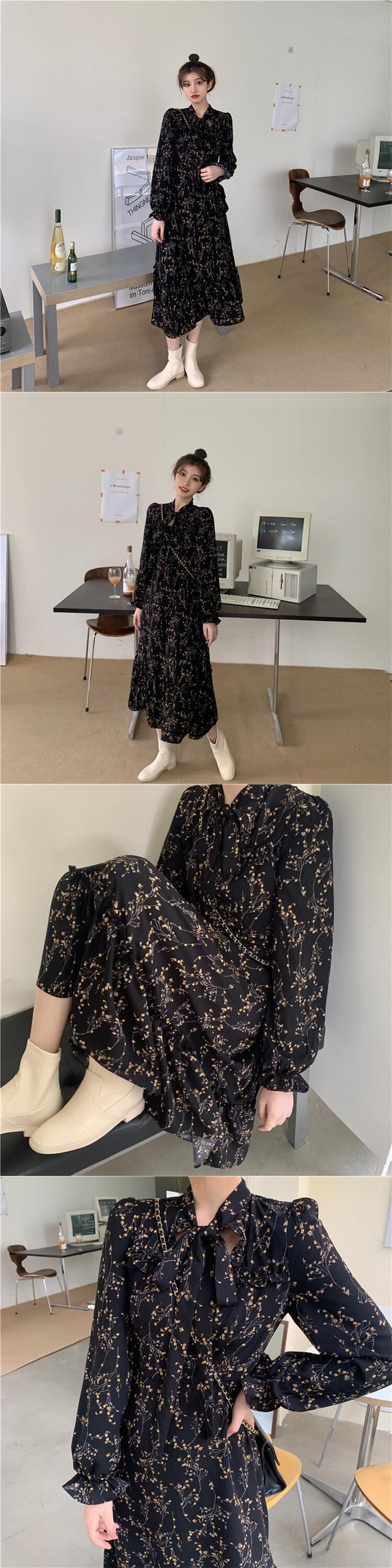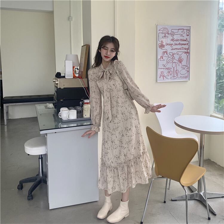 スプリングオータムウェスト薄手ドレス レディース ロング リボン エレガント 春物 秋物 misskkl53851644534