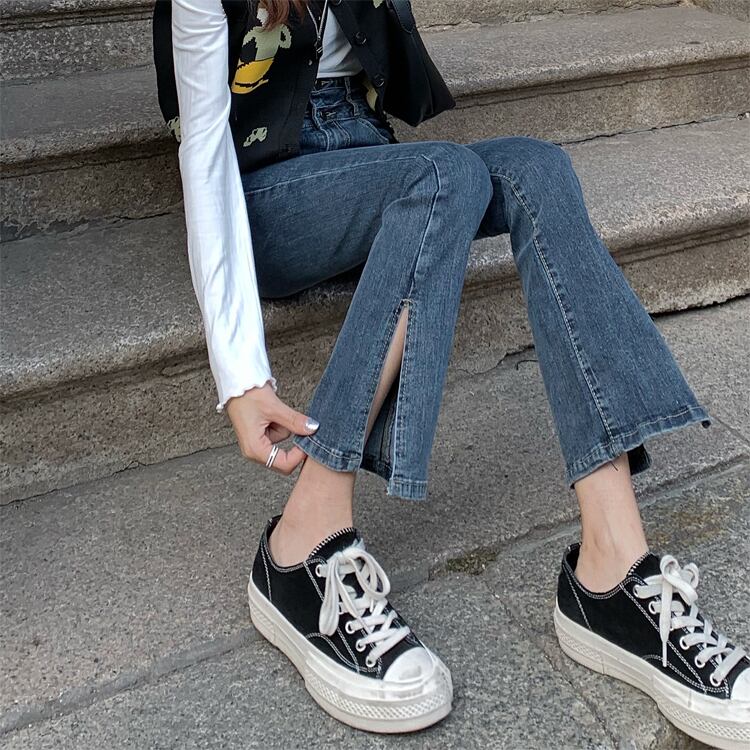 スプリングオータムスタンダードハイウェストスリムロングパンツ レディース レトロ 春物 秋物 misskkl34306799134