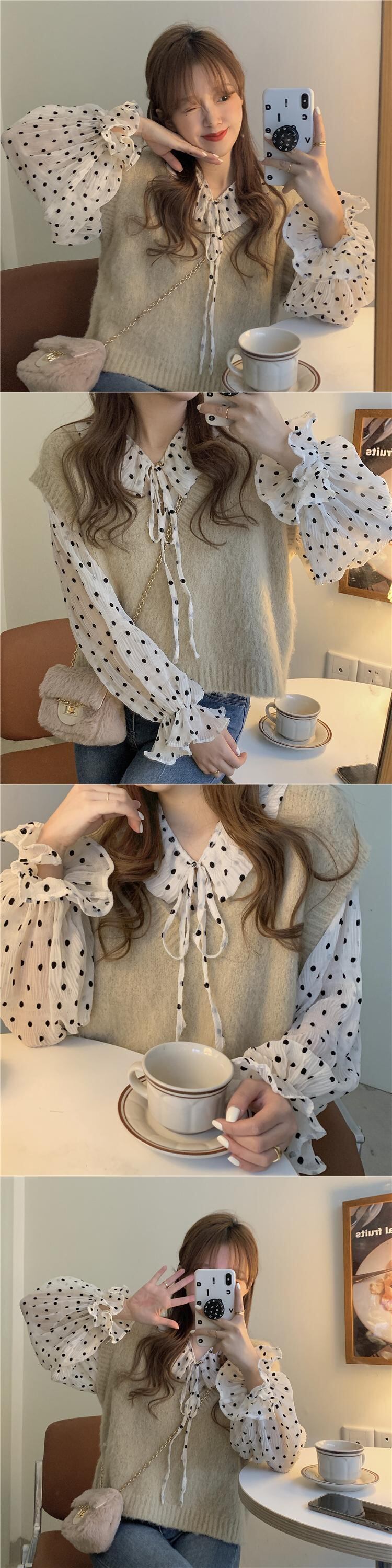 スプリングオータム水玉ルーズ長袖スリーブシャツ ロング 春物 秋物 misskkl18658227531