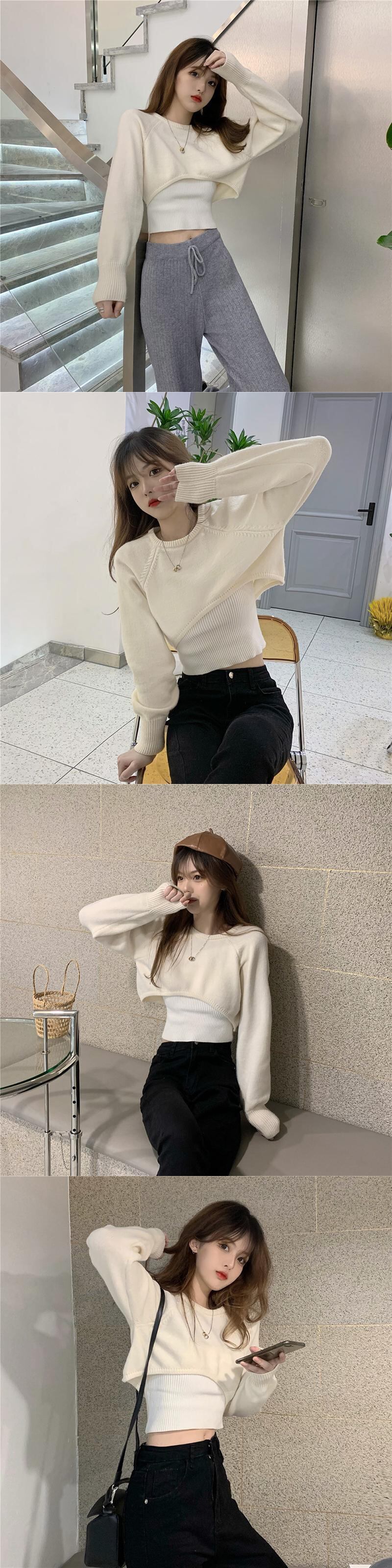色:グレーグリーンのセーター,白いセーター,スリングシングルピース