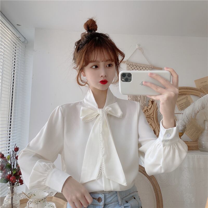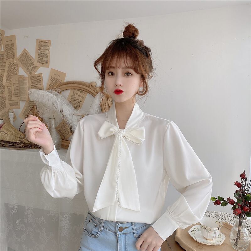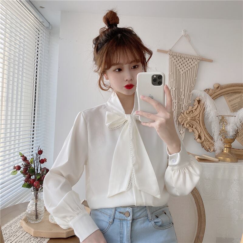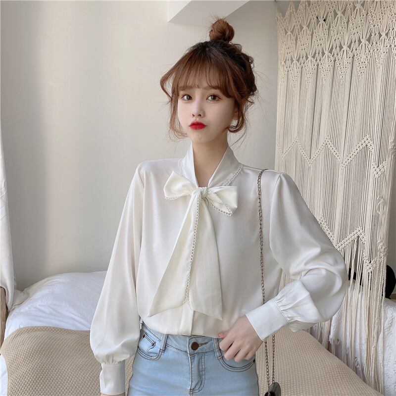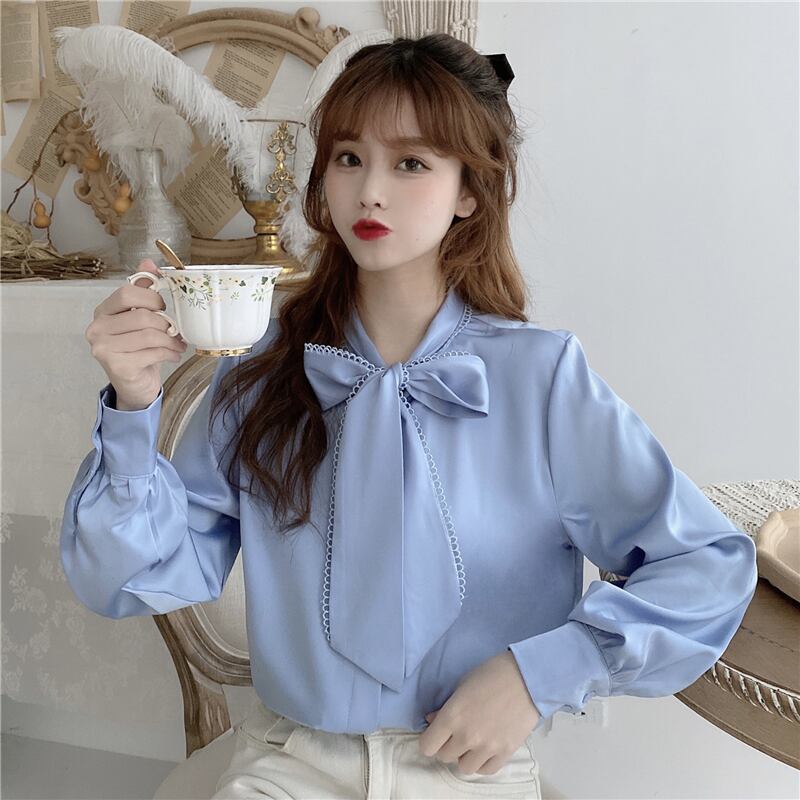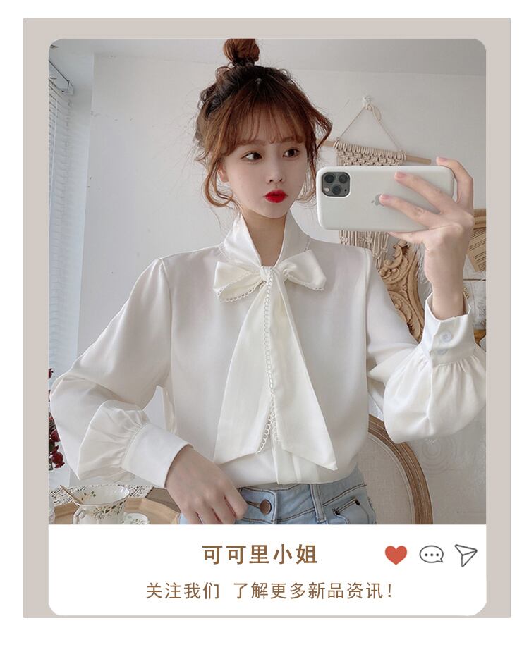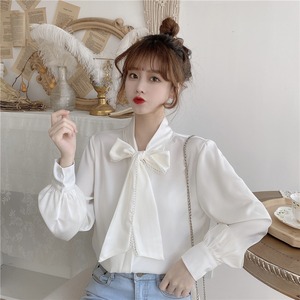 スプリングルーズリボンカラーシャツ トップス ロング 春物 ステッチ misskkl55121793947