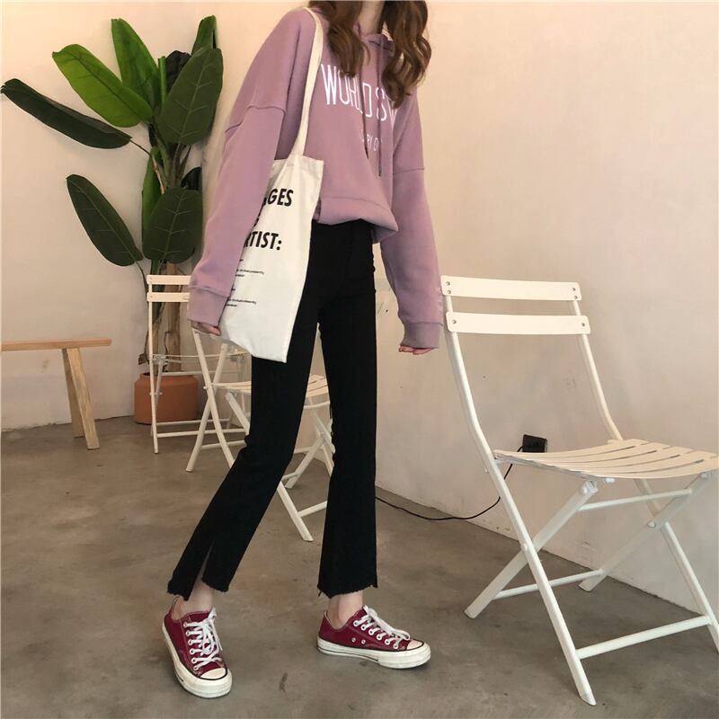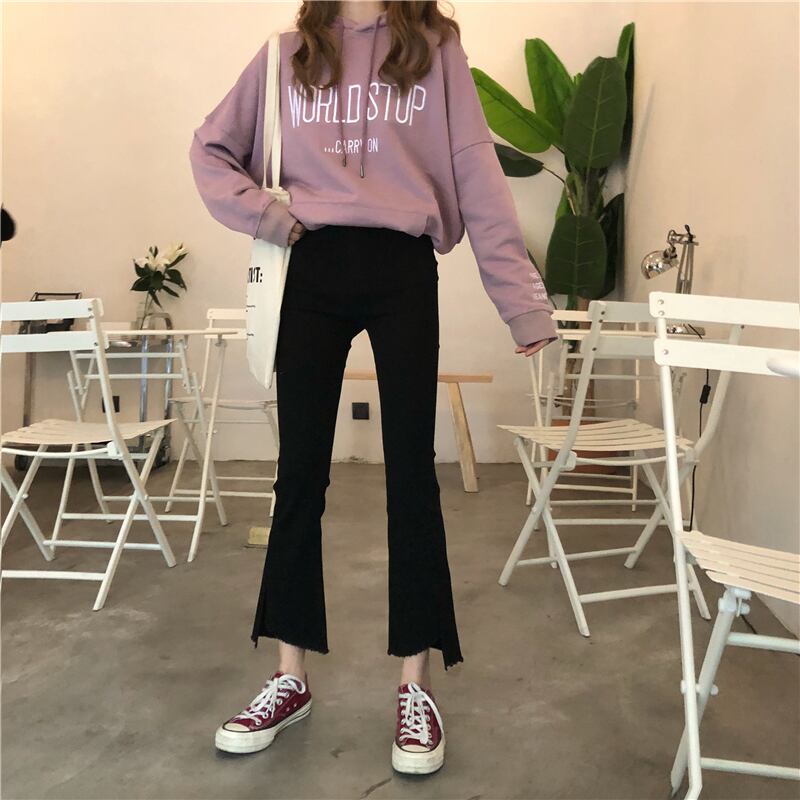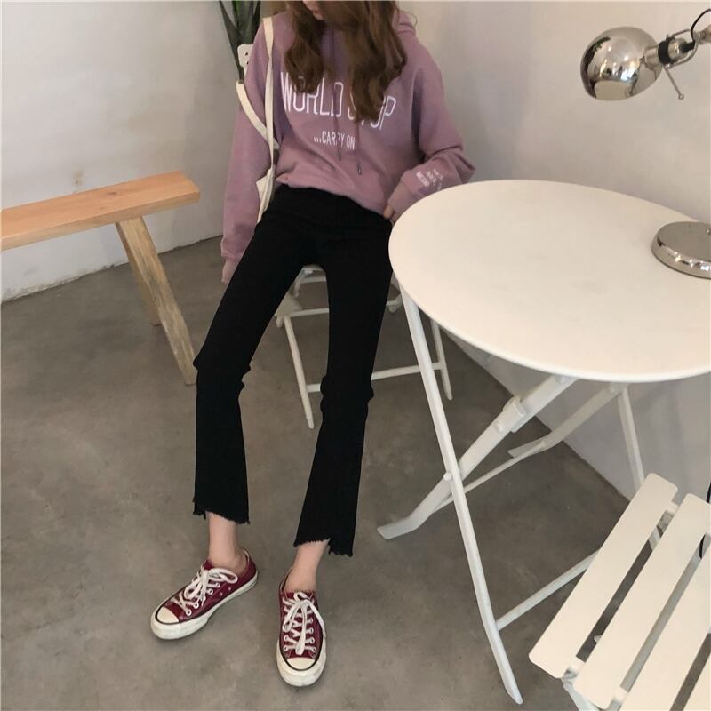 スプリングオータムハイウェスト薄手ブラッククロップドパンツ レッド 春物 秋物 misskkl2764525725