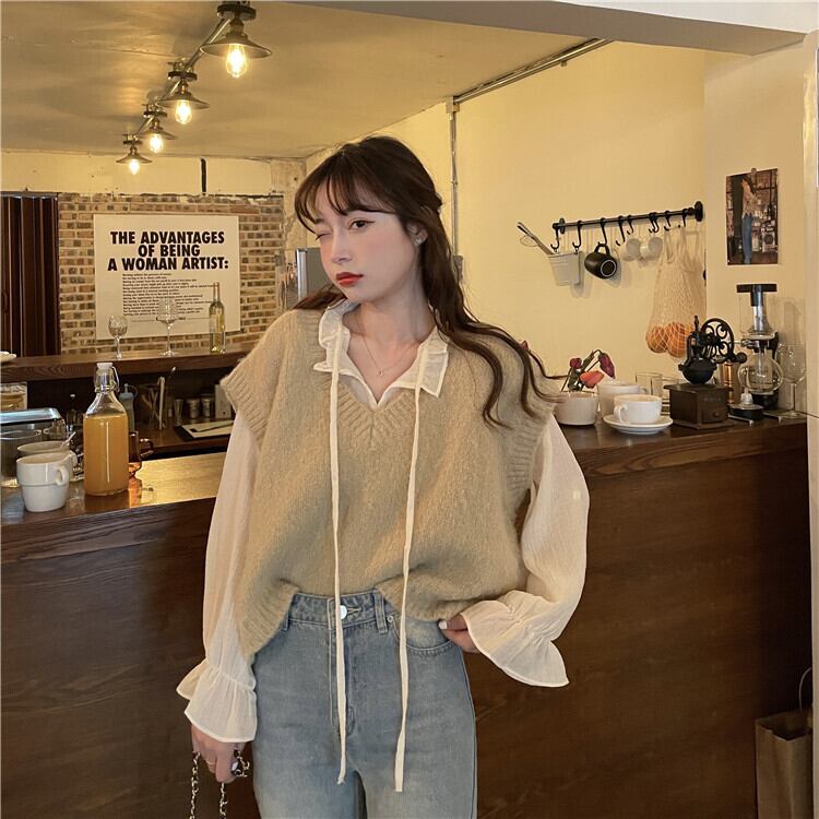 色:カーキベストワンピース,シフォンシャツワンピース