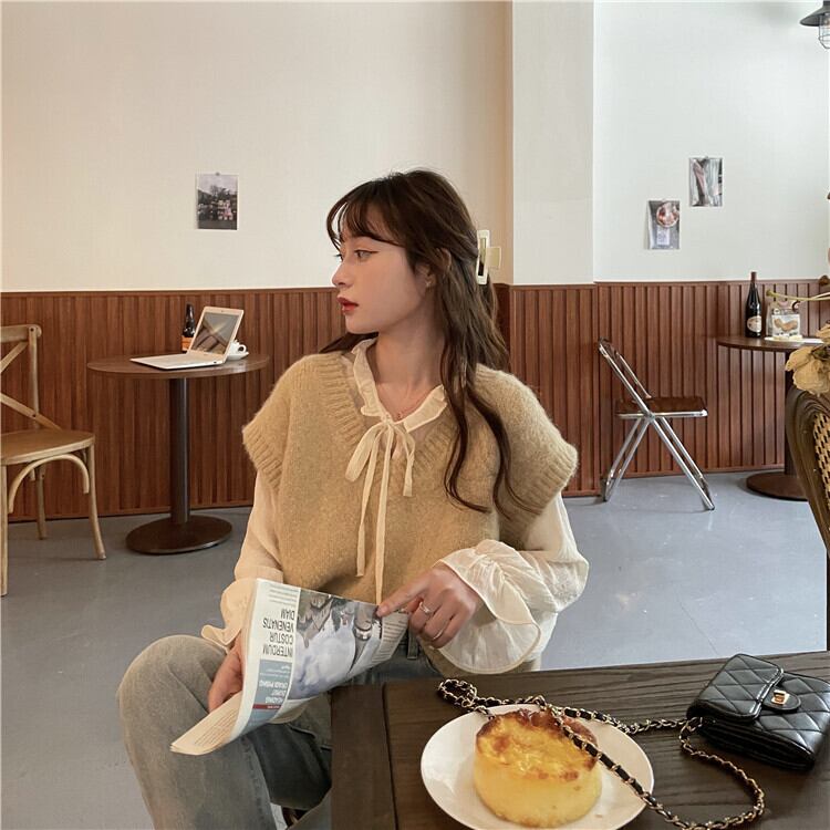 スプリングオータムVネックルーズショートセーター 春物 秋物 misskkl21862291858