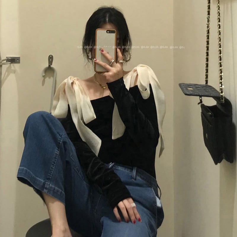 スプリングスリムレースリボンTシャツ レディース ロング 春物 misskkl88474674371