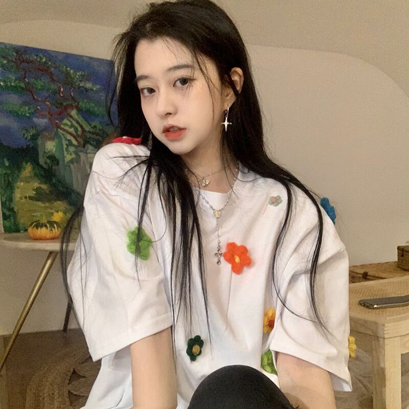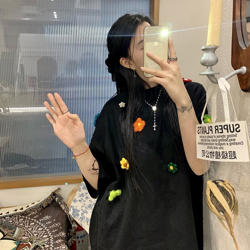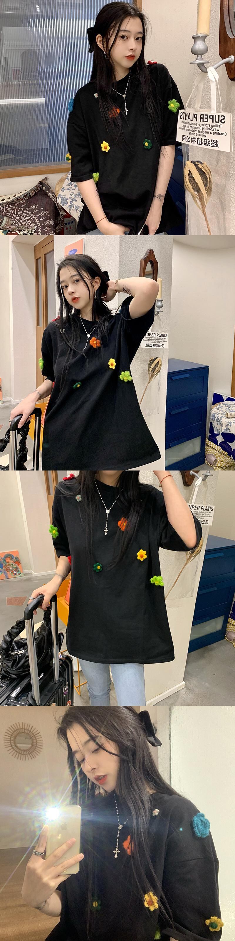 スプリングオータムルーズTシャツ トップス 春物 秋物 フラワーデザイン misskkl57758941937