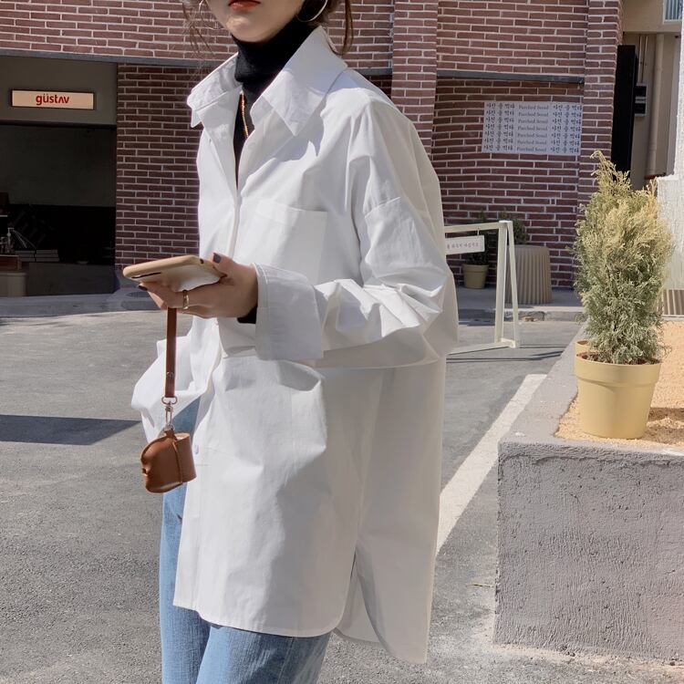 カラーシャツ スプリングオータムルーズトップス ロング 春物 秋物 misskkl46127221028