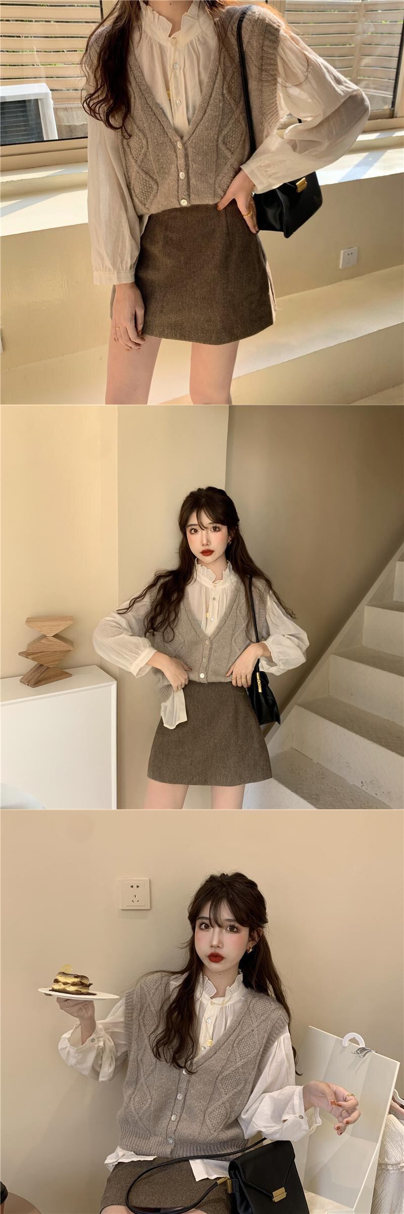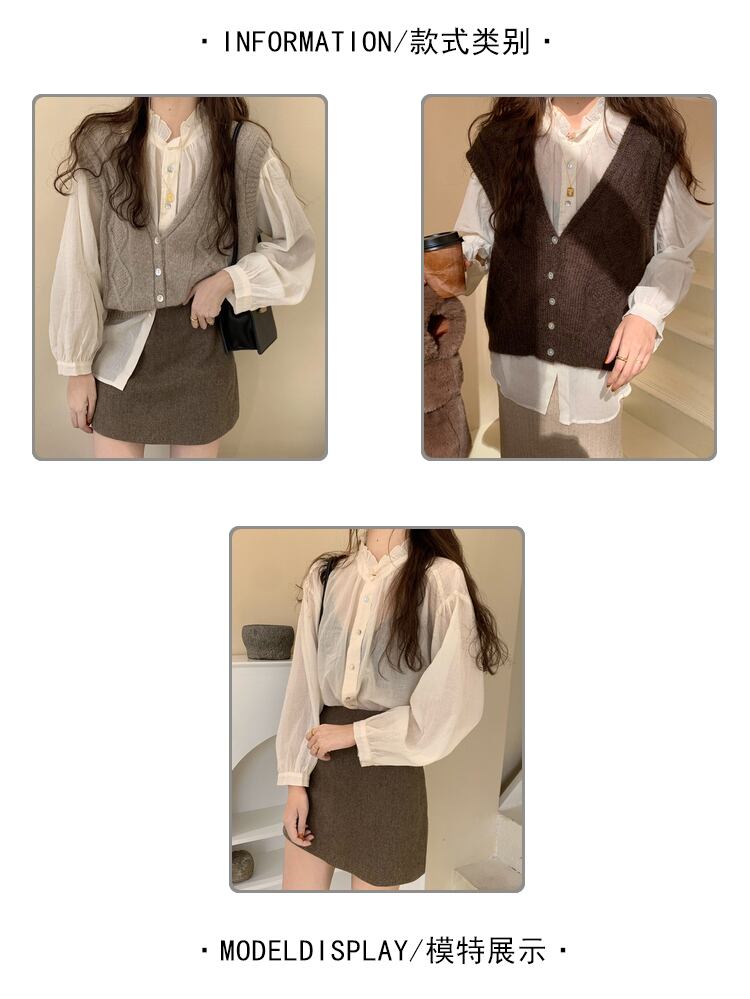 色:コーヒーベスト,ベージュのベスト,シャツ一枚