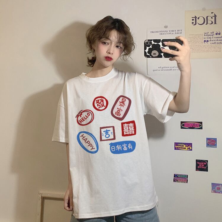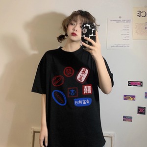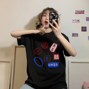 スプリングルーズラウンドネックプルオーバー プリントTシャツ トップス 春物 Oネック misskkl30989084519