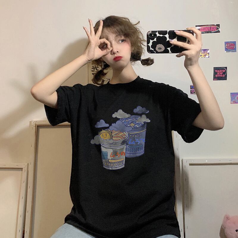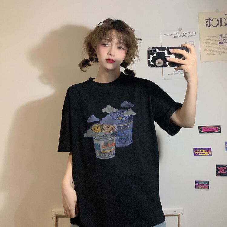 色:白い水彩インスタントラーメンTシャツ,黒の水彩インスタントラーメンTシャツ
