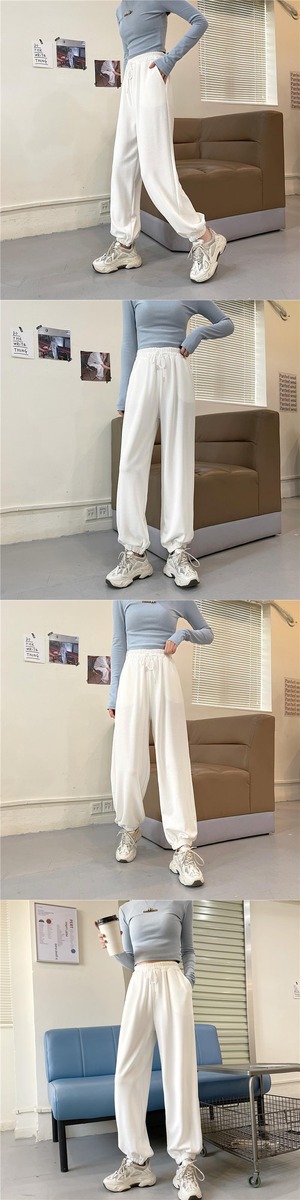 スプリングオータムハイウェスト薄手カジュアルパンツ ホワイト 春物 秋物 misskkl64168585647
