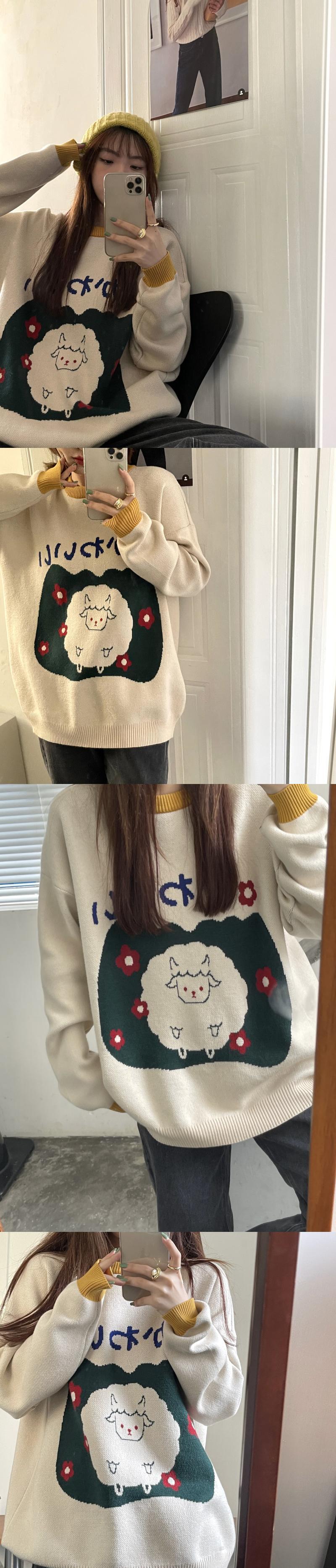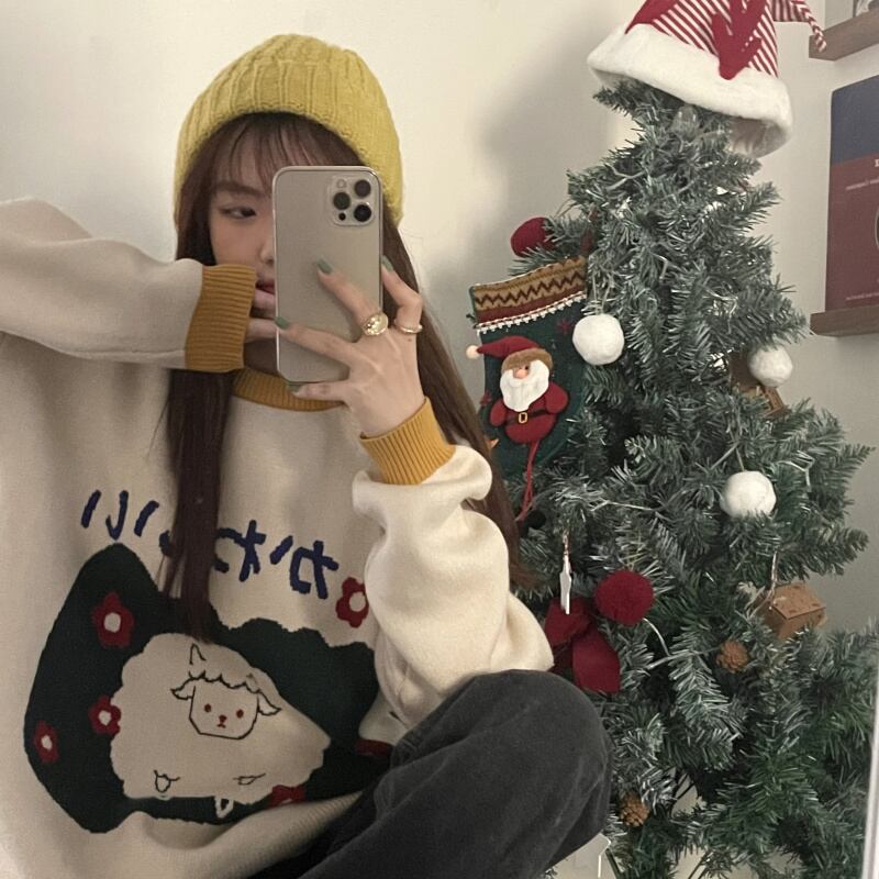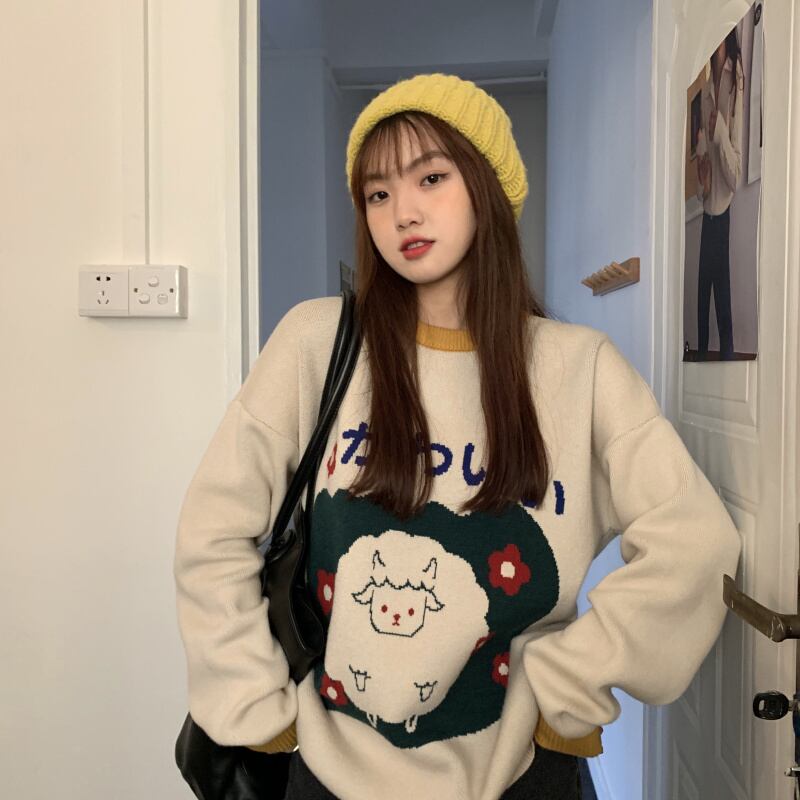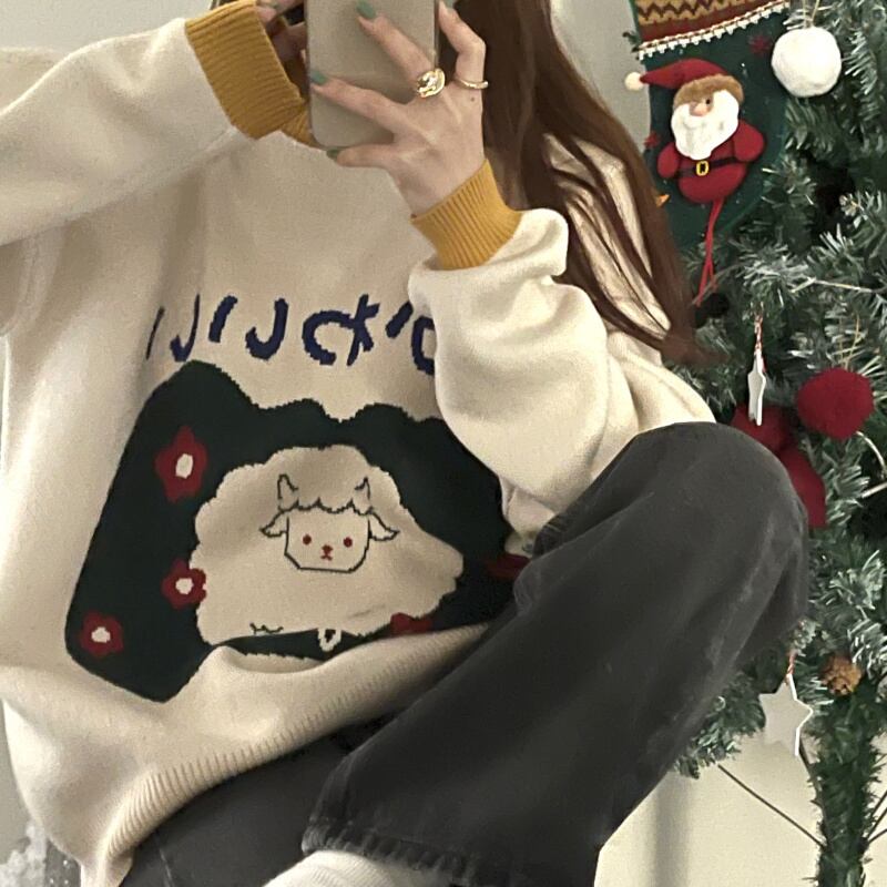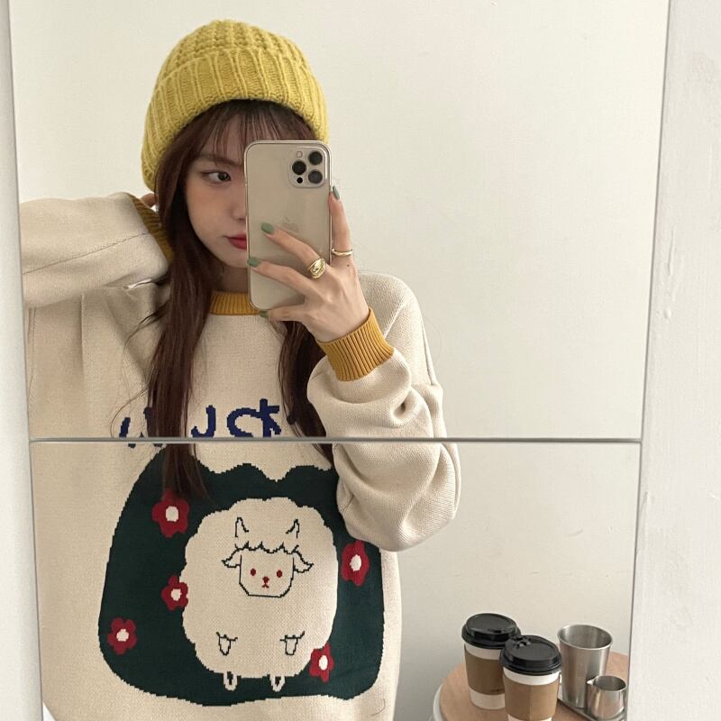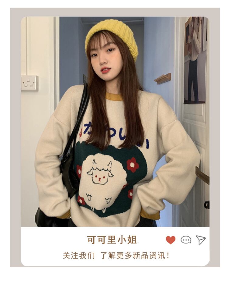 スプリングオータムルーズラウンドネックジャカードセーター トップス レディース ロング 春物 秋物 Oネック misskkl99879642074