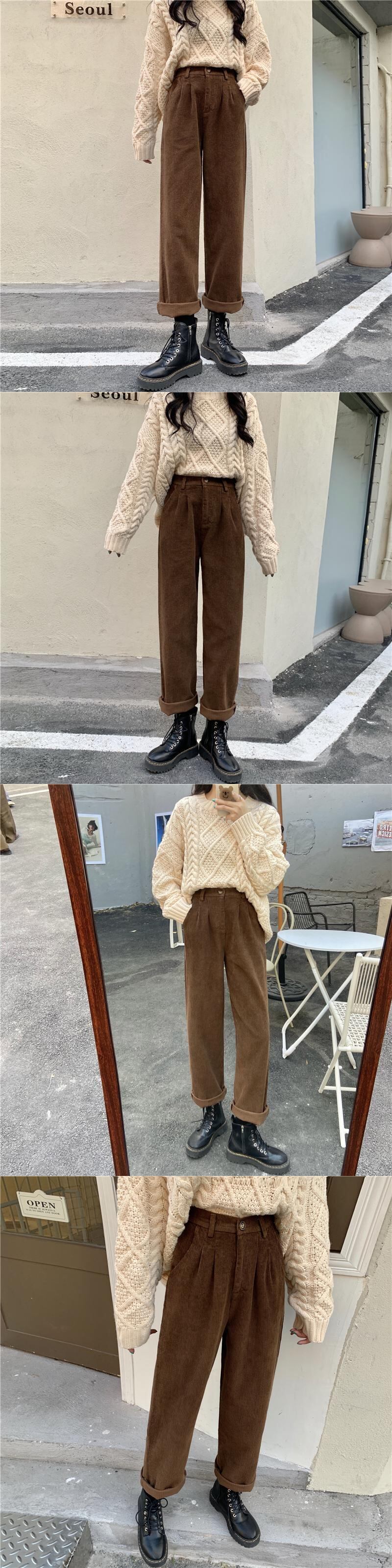 スプリングオータムルーズコーデュロイパンツ ハイウェスト薄手カジュアルロング 春物 秋物 misskkl97614697090