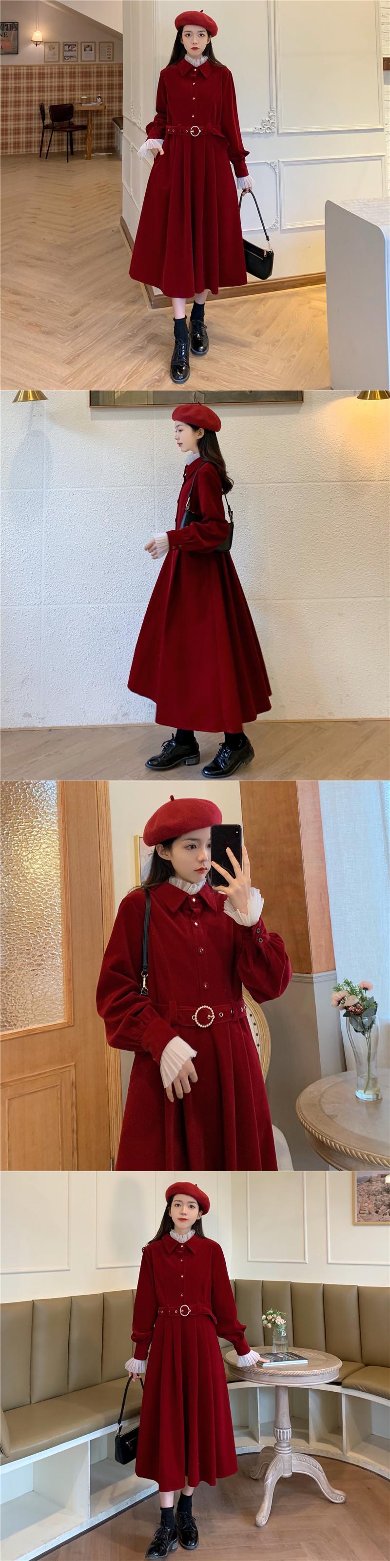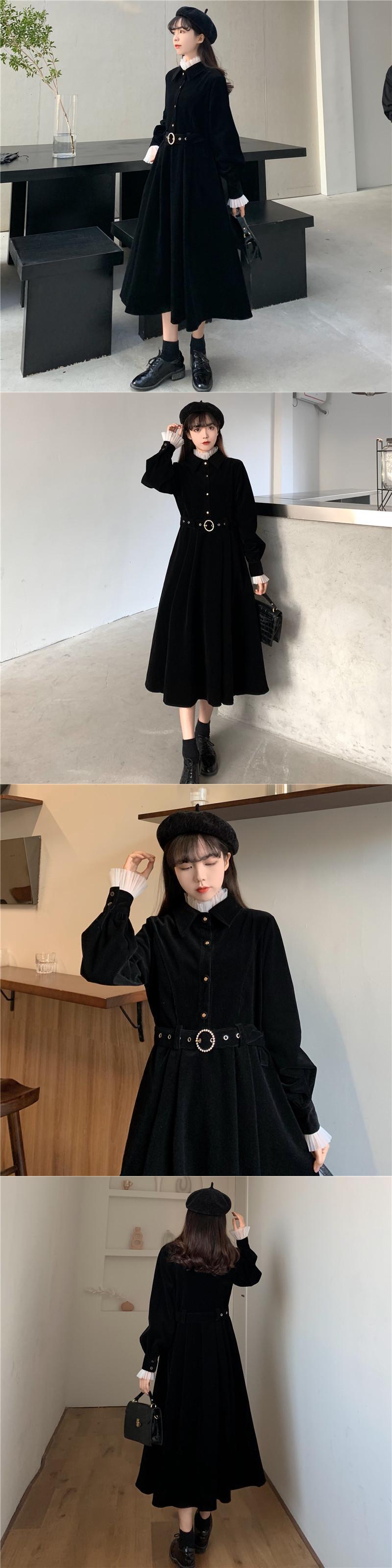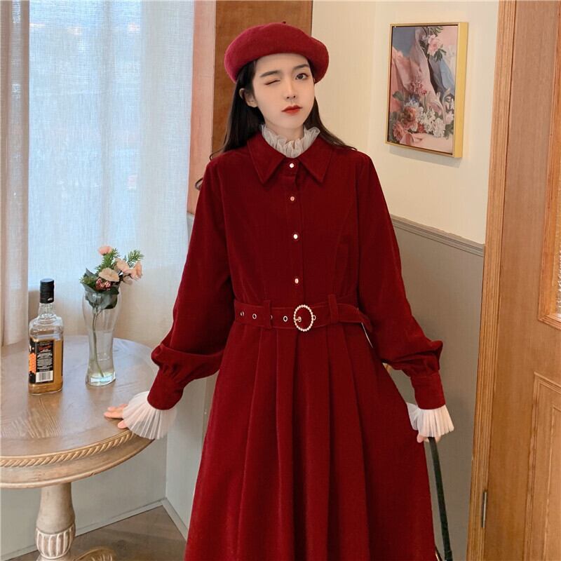 スプリングオータムスタンダードウェストカラードレス スカート ロング レトロ 春物 秋物 misskkl25949475157