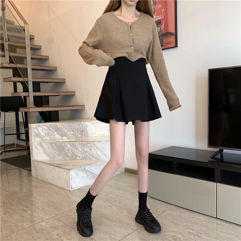 スプリングオータムAラインショートブラックドレス ハイウェスト 春物 秋物 スカート misskkl51451438042