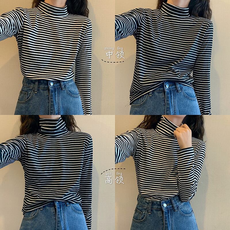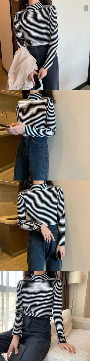 スプリングオータムストライプスリムベーシックTシャツ トップス レディース ロング 春物 秋物 misskkl86622986226