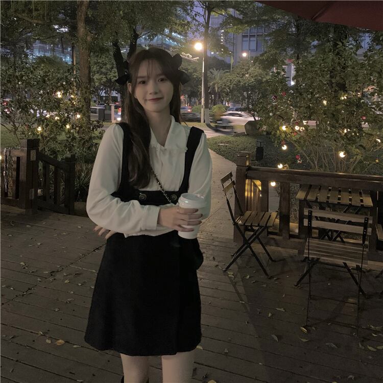 色:ベルベットシャツシングル,ブラックストラップドレス