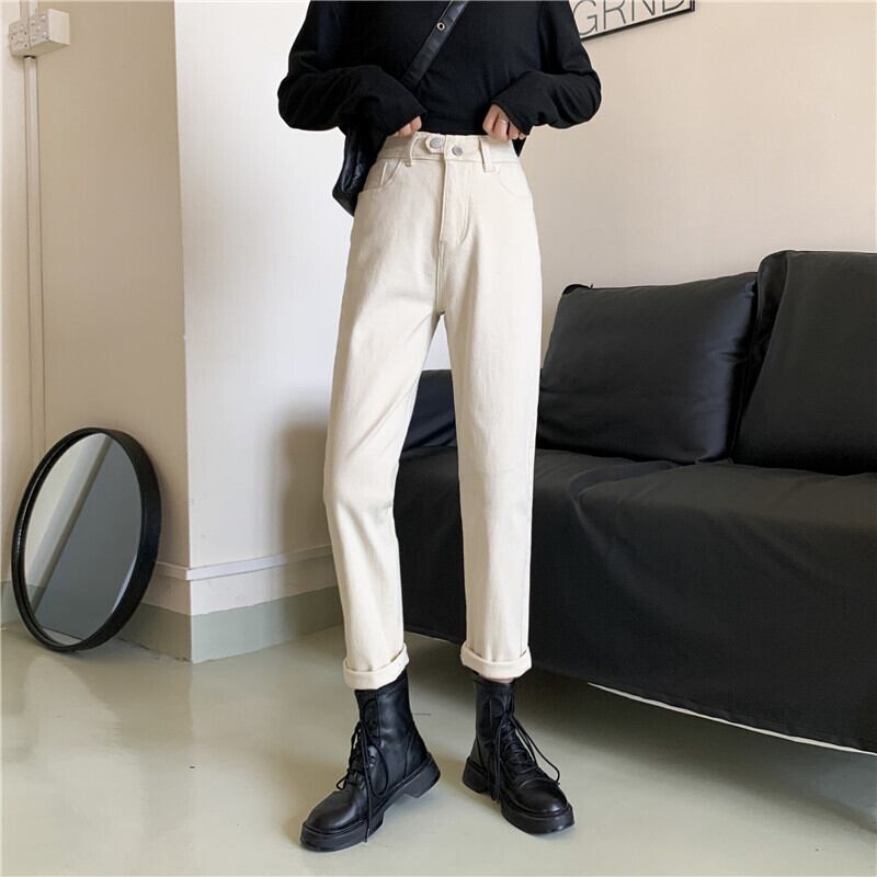 ホワイトジーンズ スプリングオータムベルベットハイウェストウェスト薄手ルーズパンツ 春物 秋物 misskkl59616813779