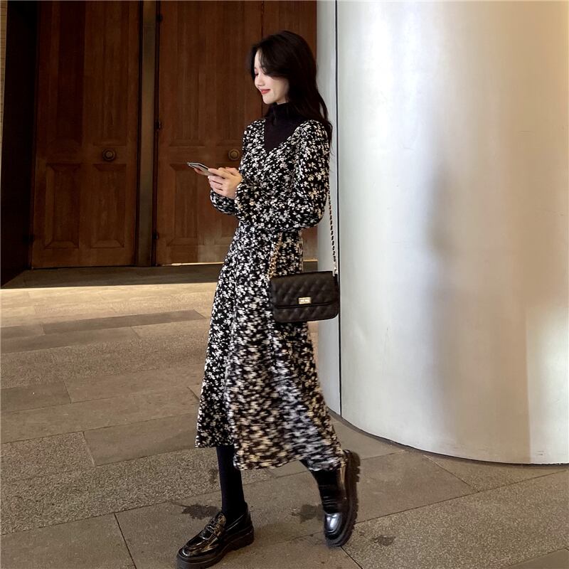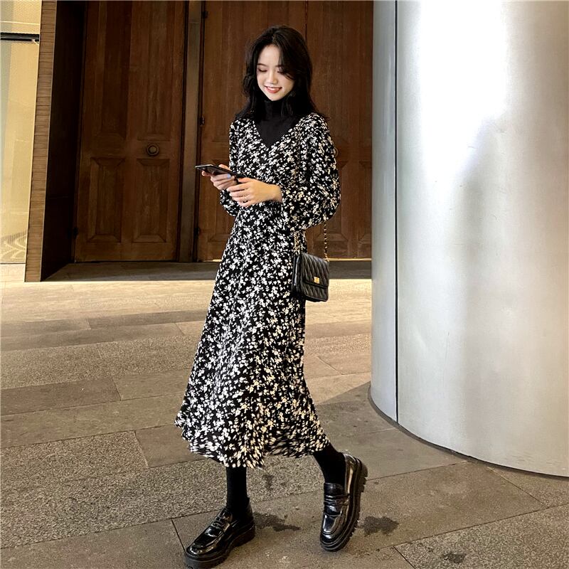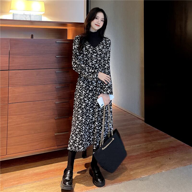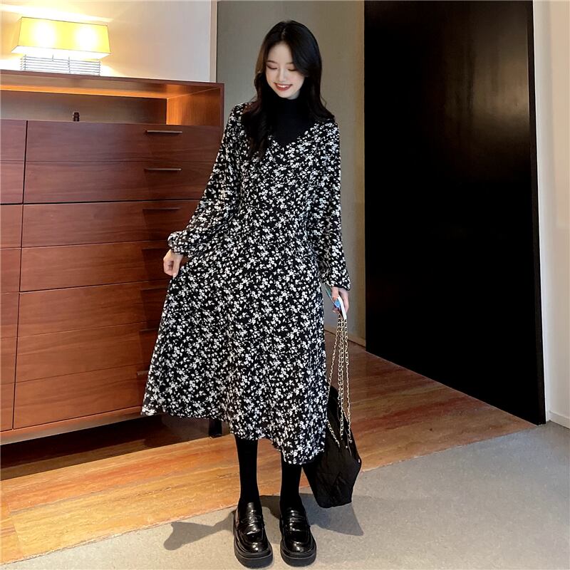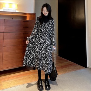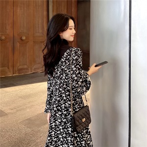 スプリングオータムスタンダードウェスト薄手フローラルドレス レディース ロング レトロ 春物 秋物 花柄 misskkl61187568955