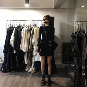 スプリングオータムスタイルブラックドレス スカート ロング 大人ガーリー スウィート キュート カジュアル 春物 秋物 misskkl57446377191