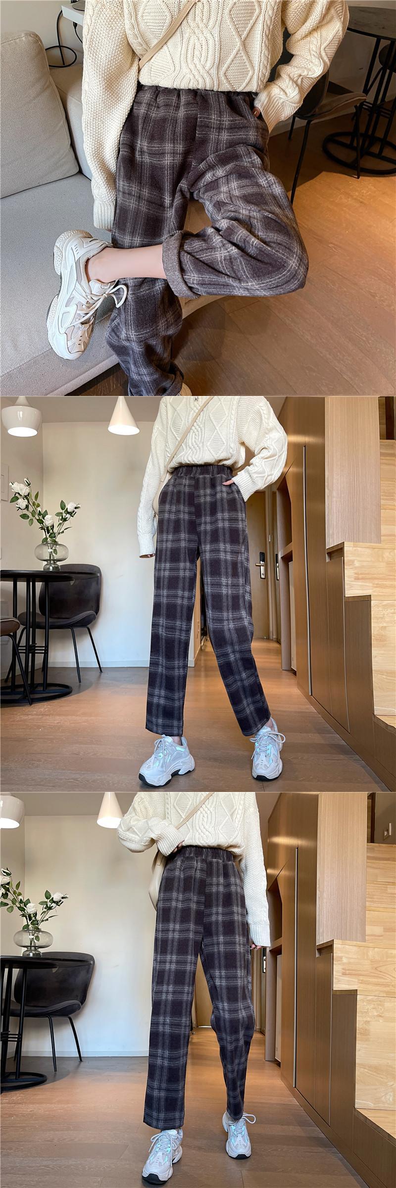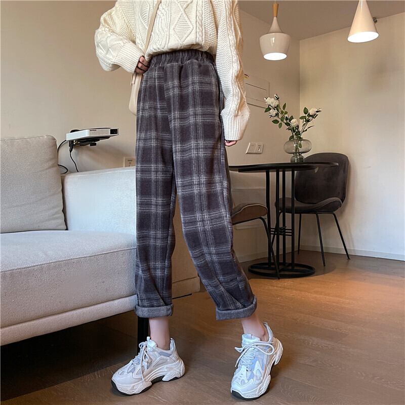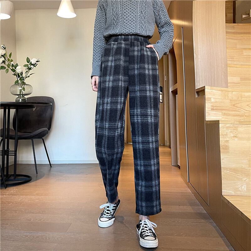 ウィンタースタンダードハイウェストウェスト格子柄ルーズカジュアルパンツ レトロ 冬物 misskkl85290531954
