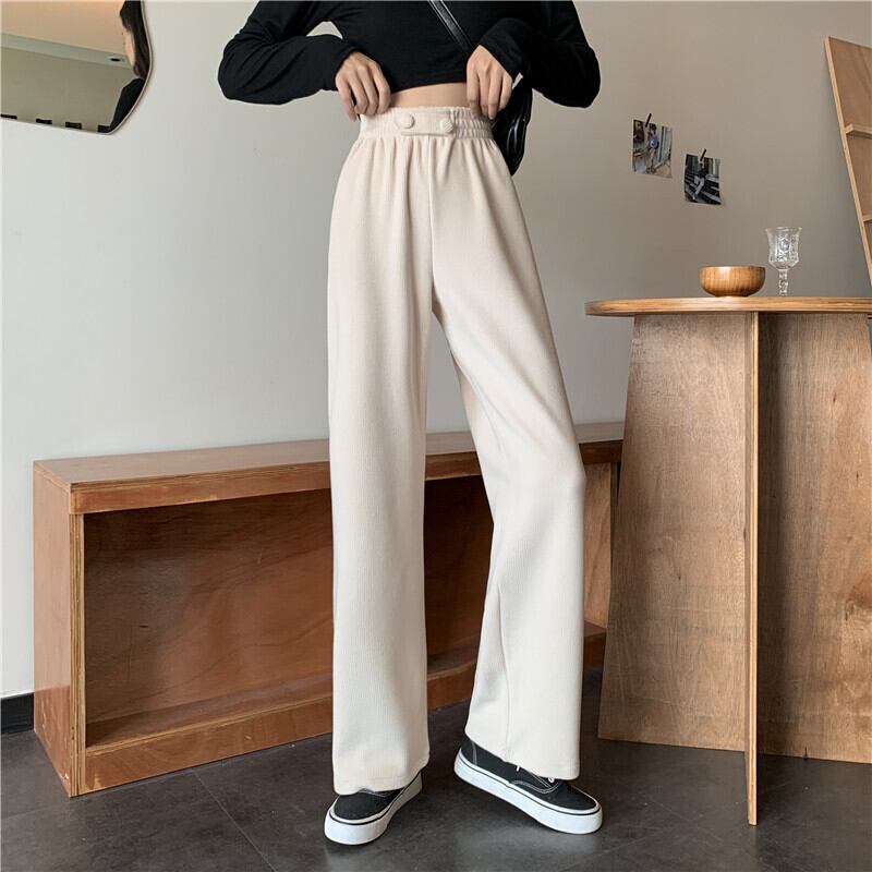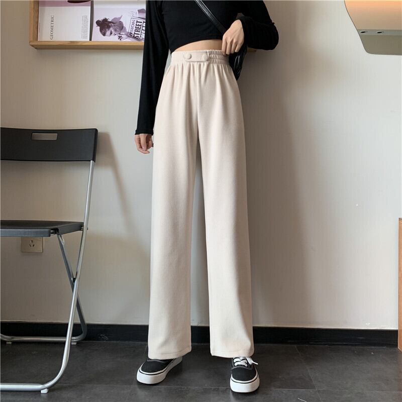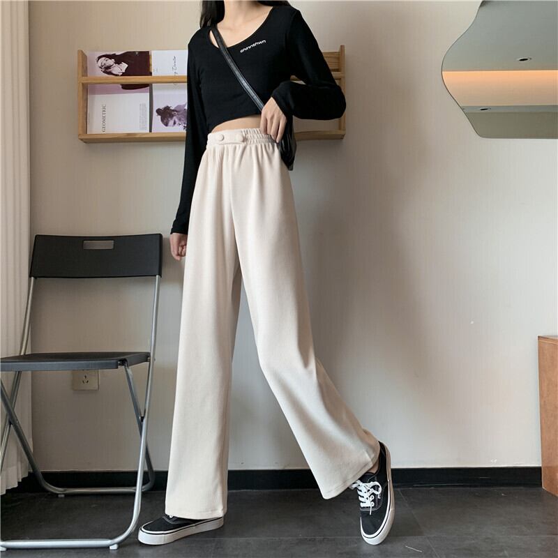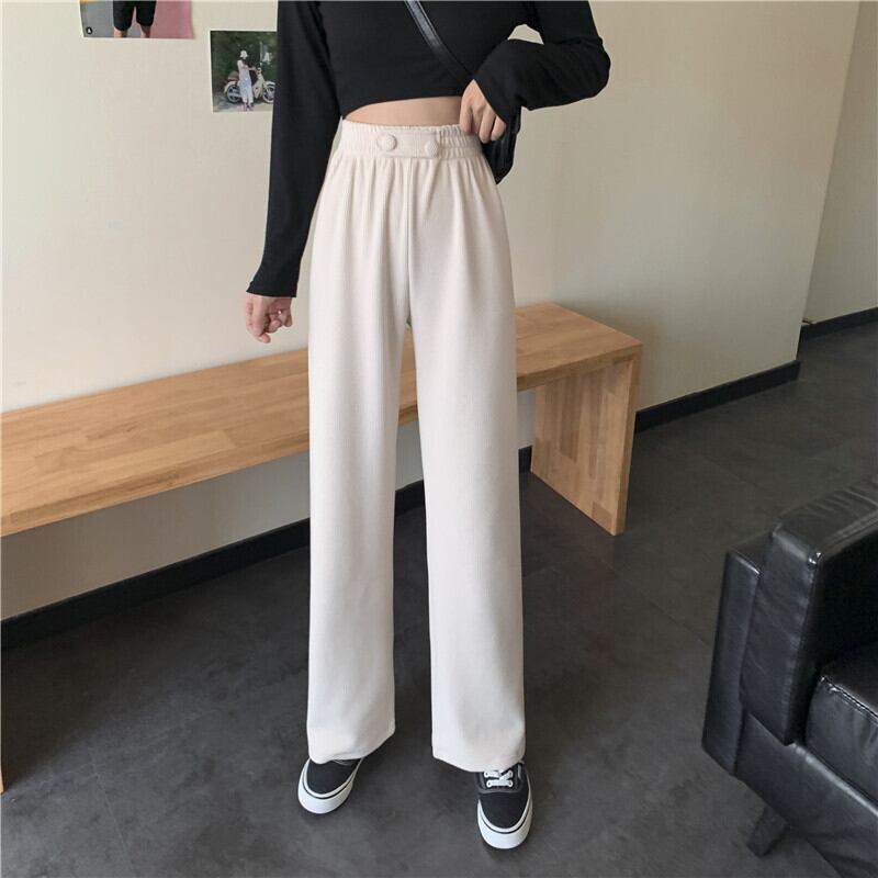 スプリングオータムハイウェストウェストスリムニットパンツ ワイドレッグカジュアル 春物 秋物 ワイドパンツ misskkl65978169826