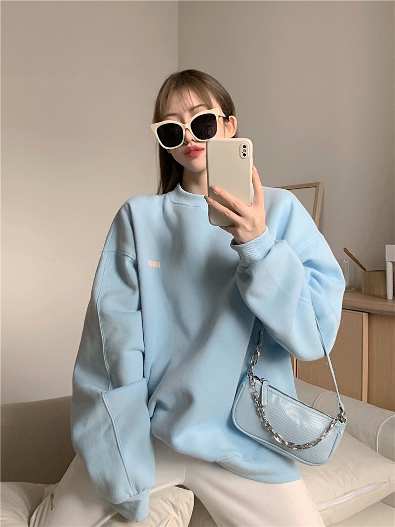 スプリングオータムベルベットブルールーズフードセーター レディース ロング 大きめサイズ 春物 秋物 misskkl90856971325