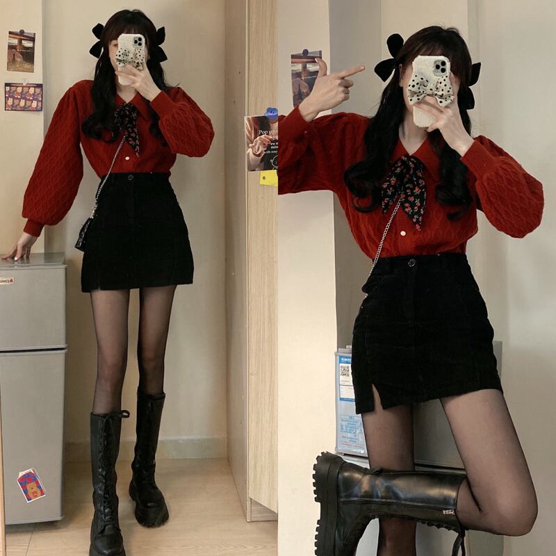 スカート レッドショートスプリングオータムスタイルスタンダード レトロ 春物 秋物 misskkl95506762854
