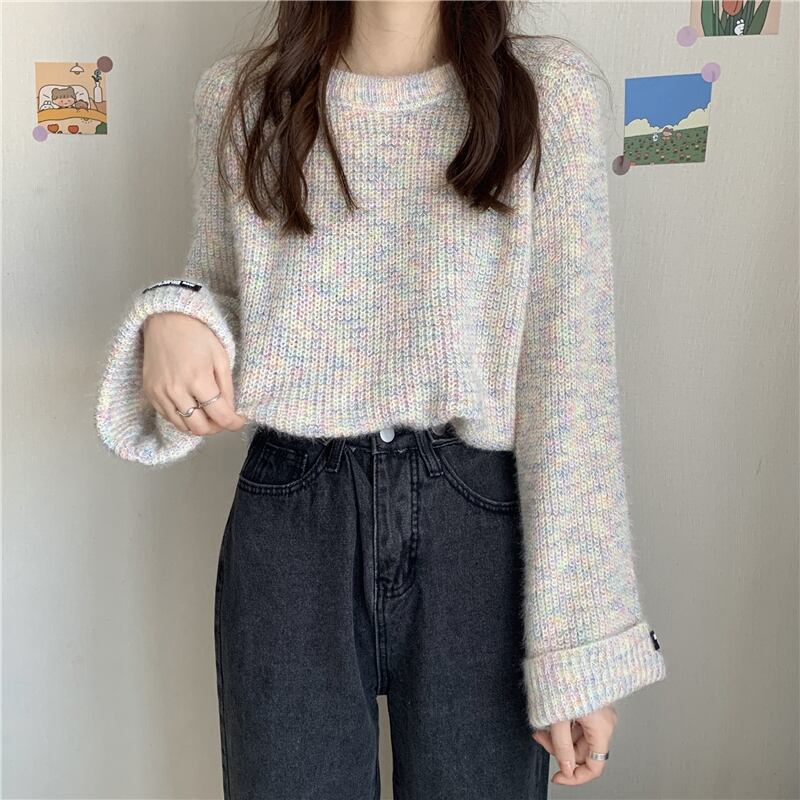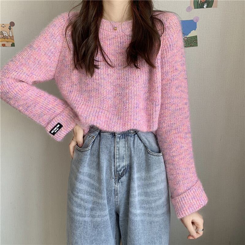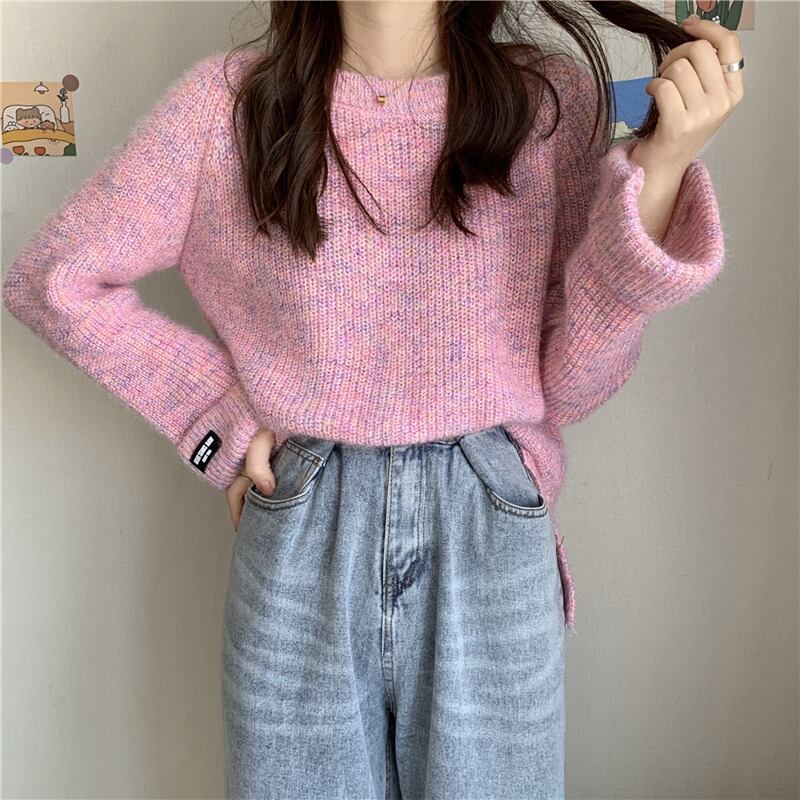 スプリングオータムショートロングカラールーズスタイル長袖スリーブニットセーター レディース 春物 秋物 misskkl8002545600