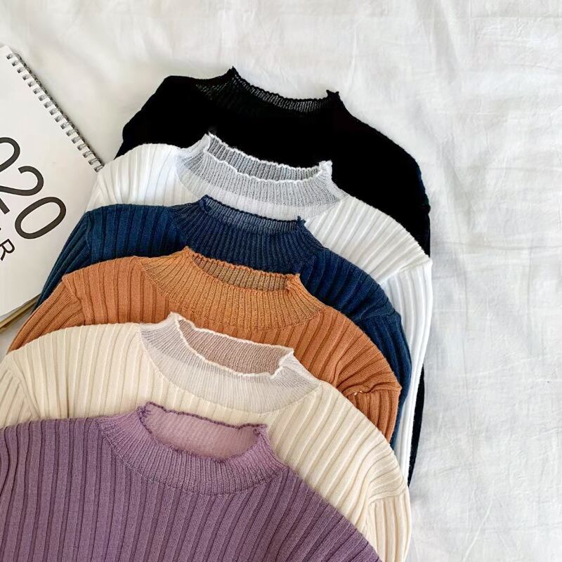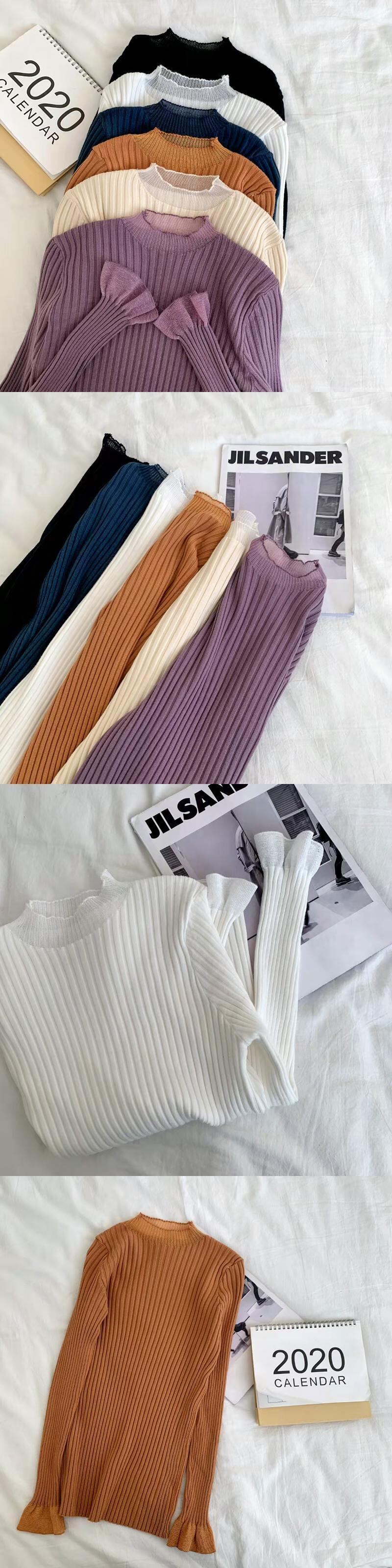 スプリングオータムスリム薄手カラーセーター トップス ロング 春物 秋物 misskkl75871678365