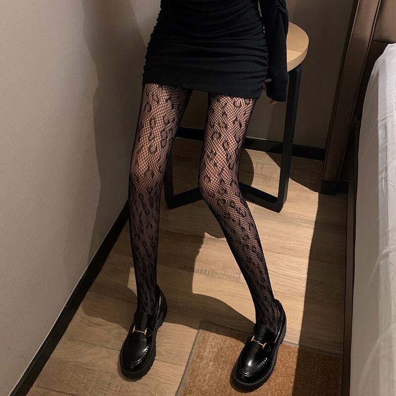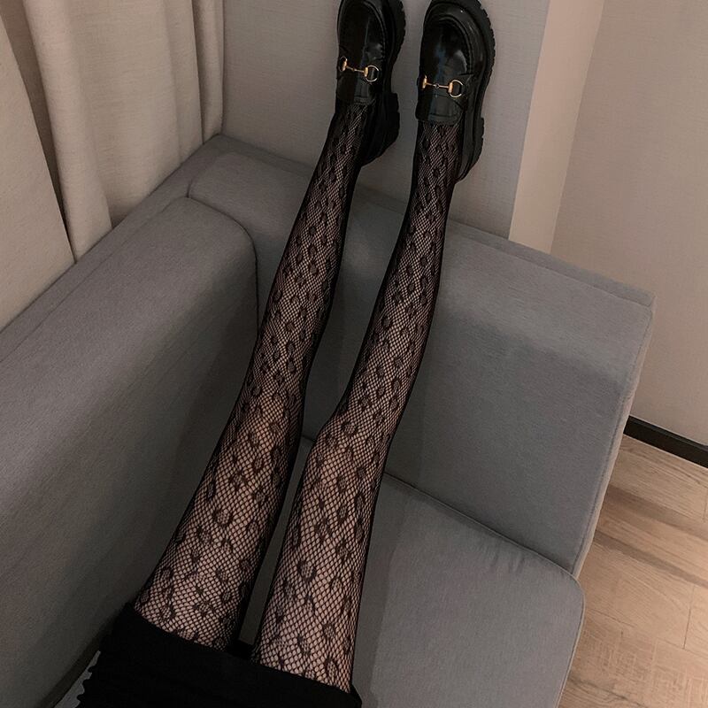 サマースタンダードストッキング レオパードプリント柄ブラック薄手 レトロ 夏物 タイツ ソックス misskkl49622163509