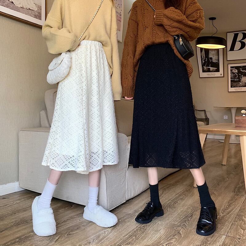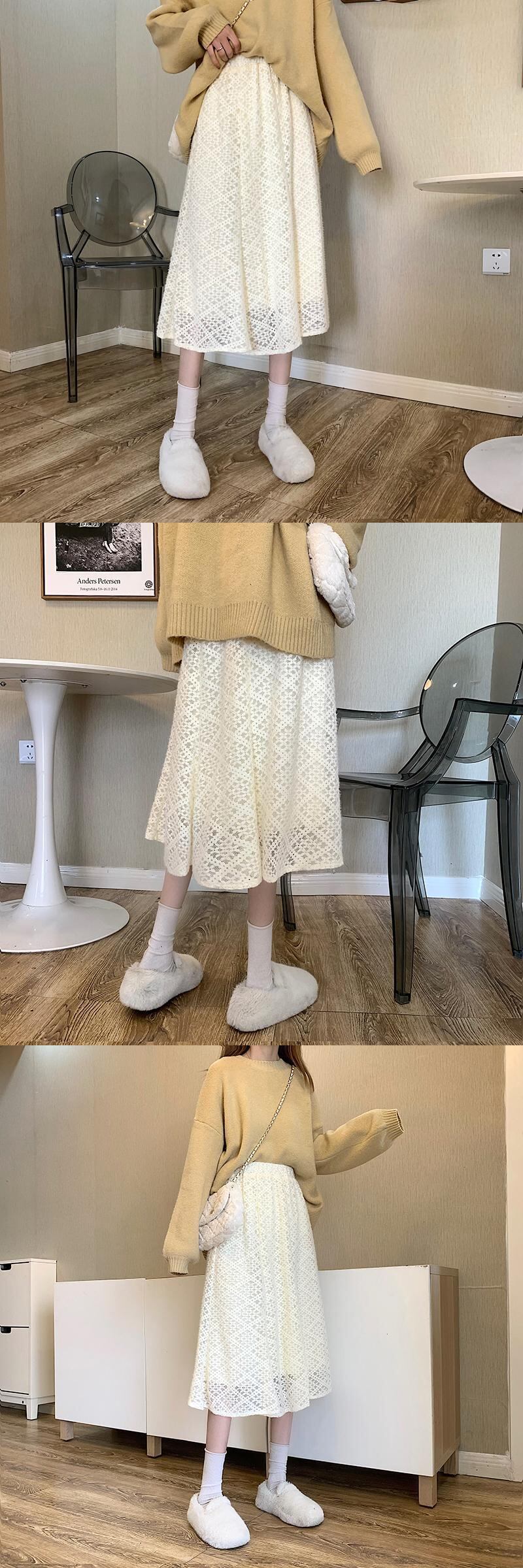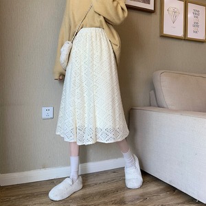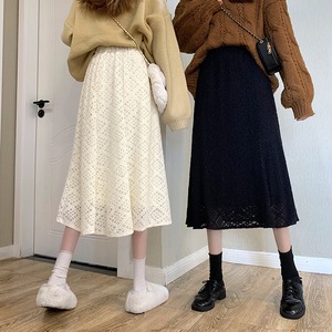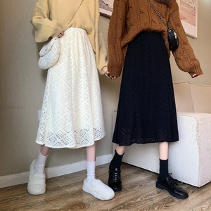 スプリングオータムAラインハイウェストウェストスリムベルベットレーススカート レディース 春物 秋物 misskkl58267376640